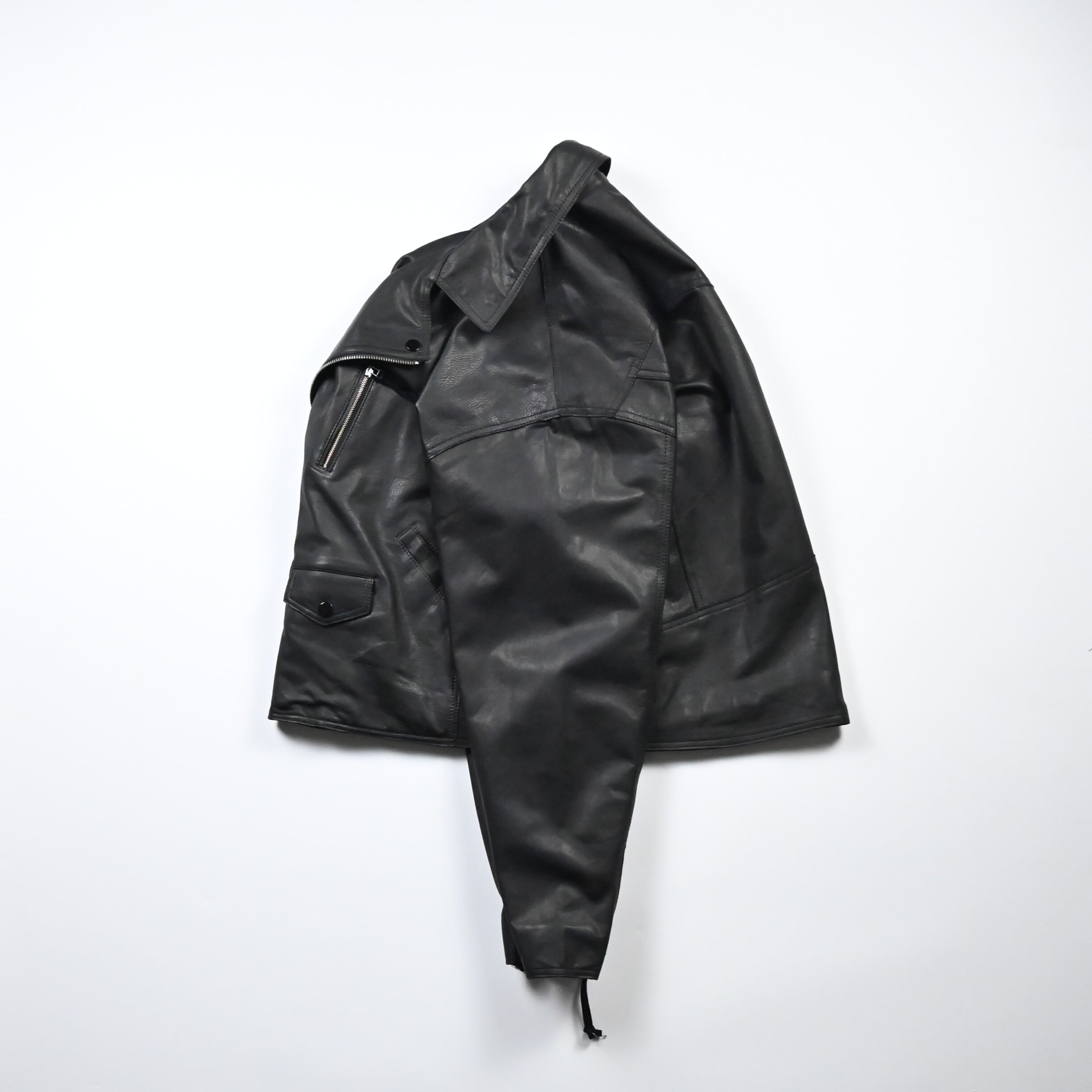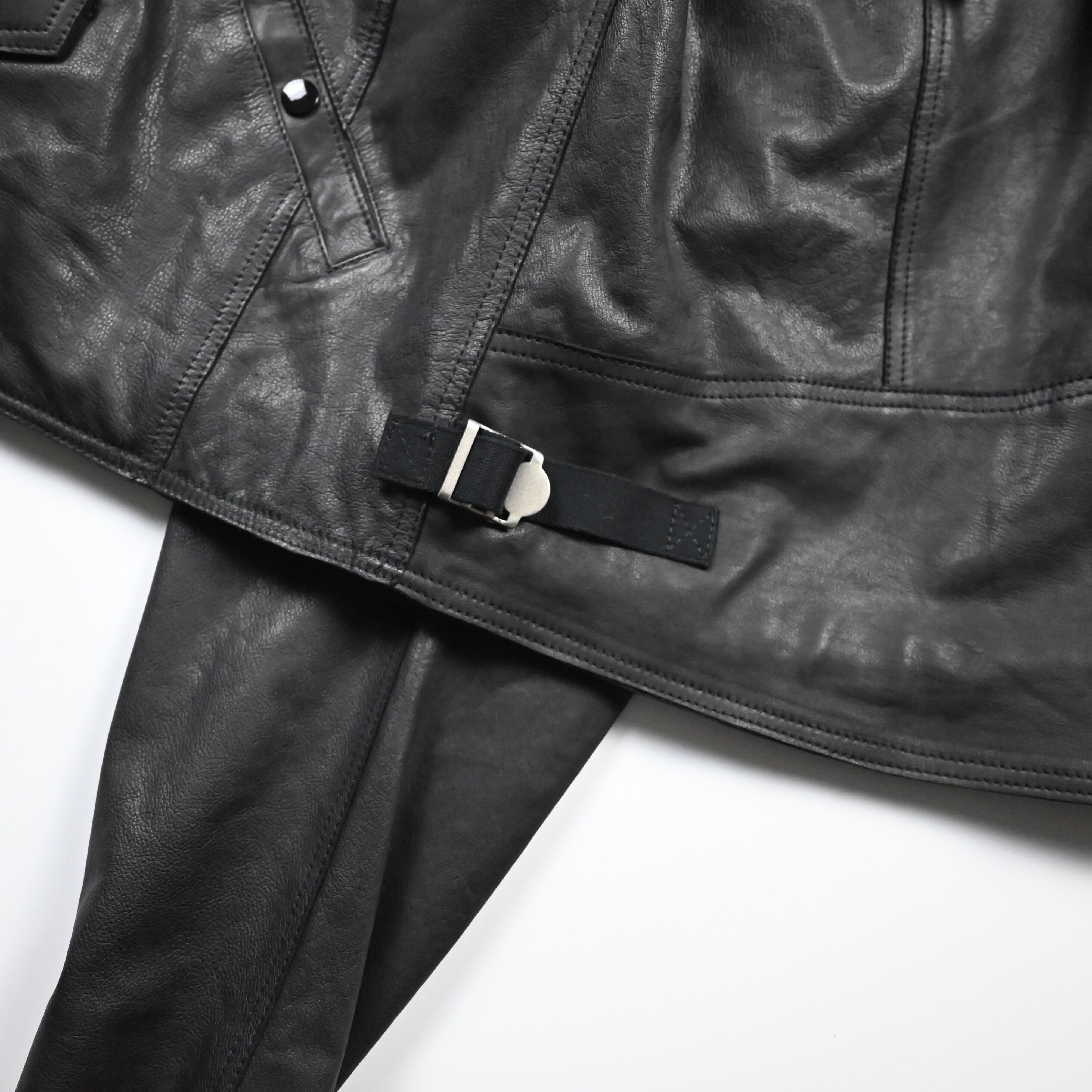 「LEATHER-COMFORTALE-PRODUCT」をコンセプトに、従来のレザーの硬さや着にくさなどのイメージを払拭するような柔らかなレザーの素材選びや人体とレザーの間の余白を大事にしたパターンメイキングを行う。
