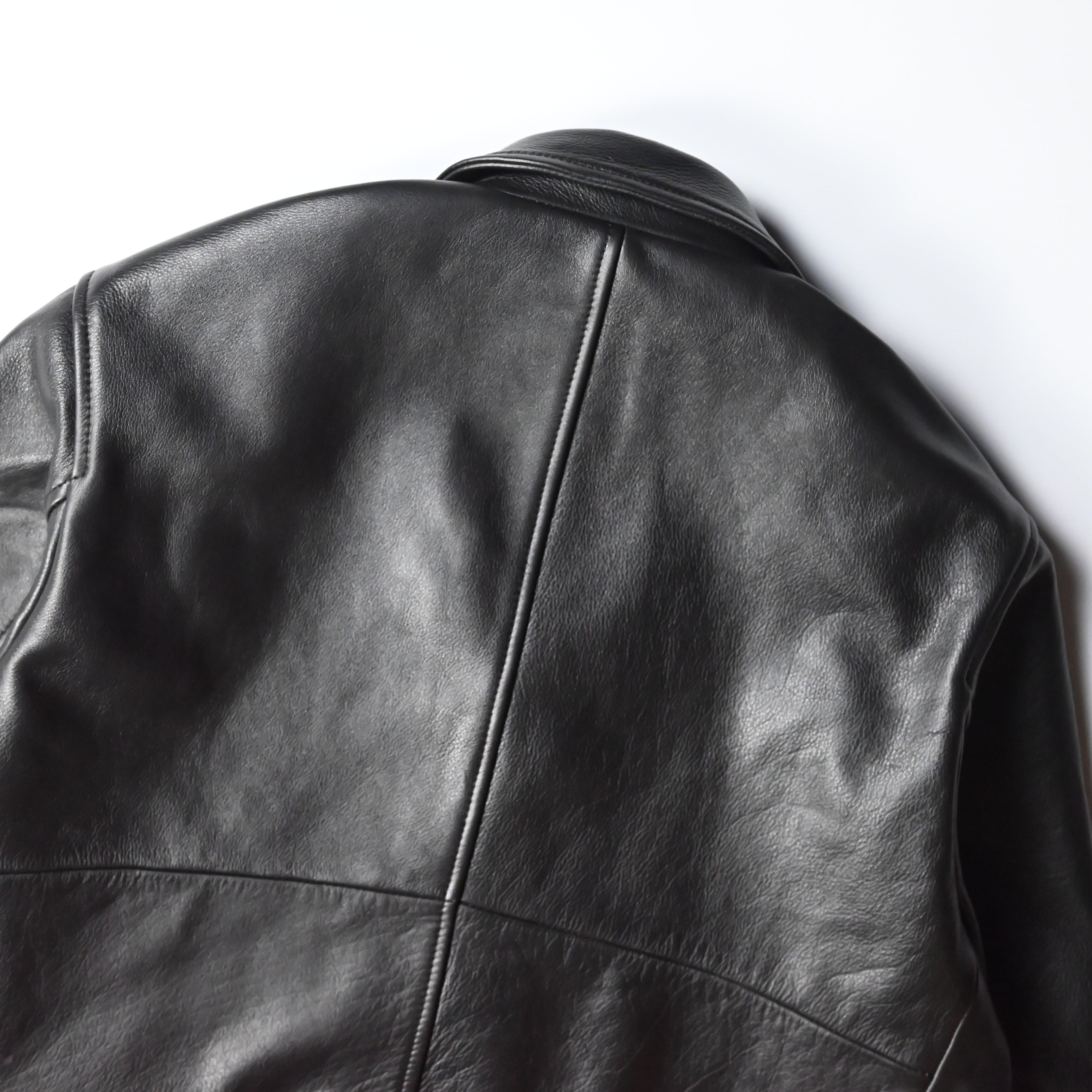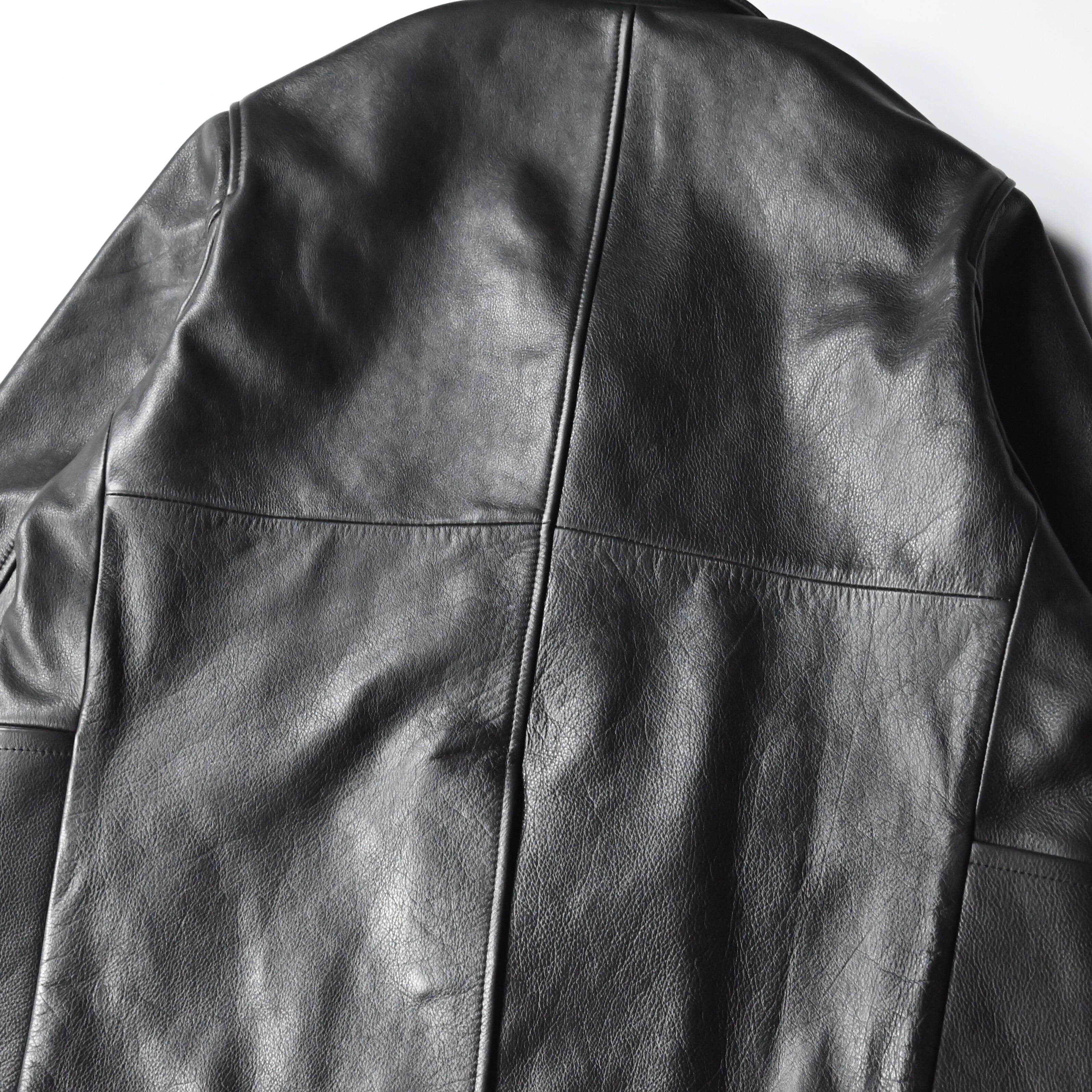 「LEATHER-COMFORTALE-PRODUCT」をコンセプトに、従来のレザーの硬さや着にくさなどのイメージを払拭するような柔らかなレザーの素材選びや人体とレザーの間の余白を大事にしたパターンメイキングを行う。