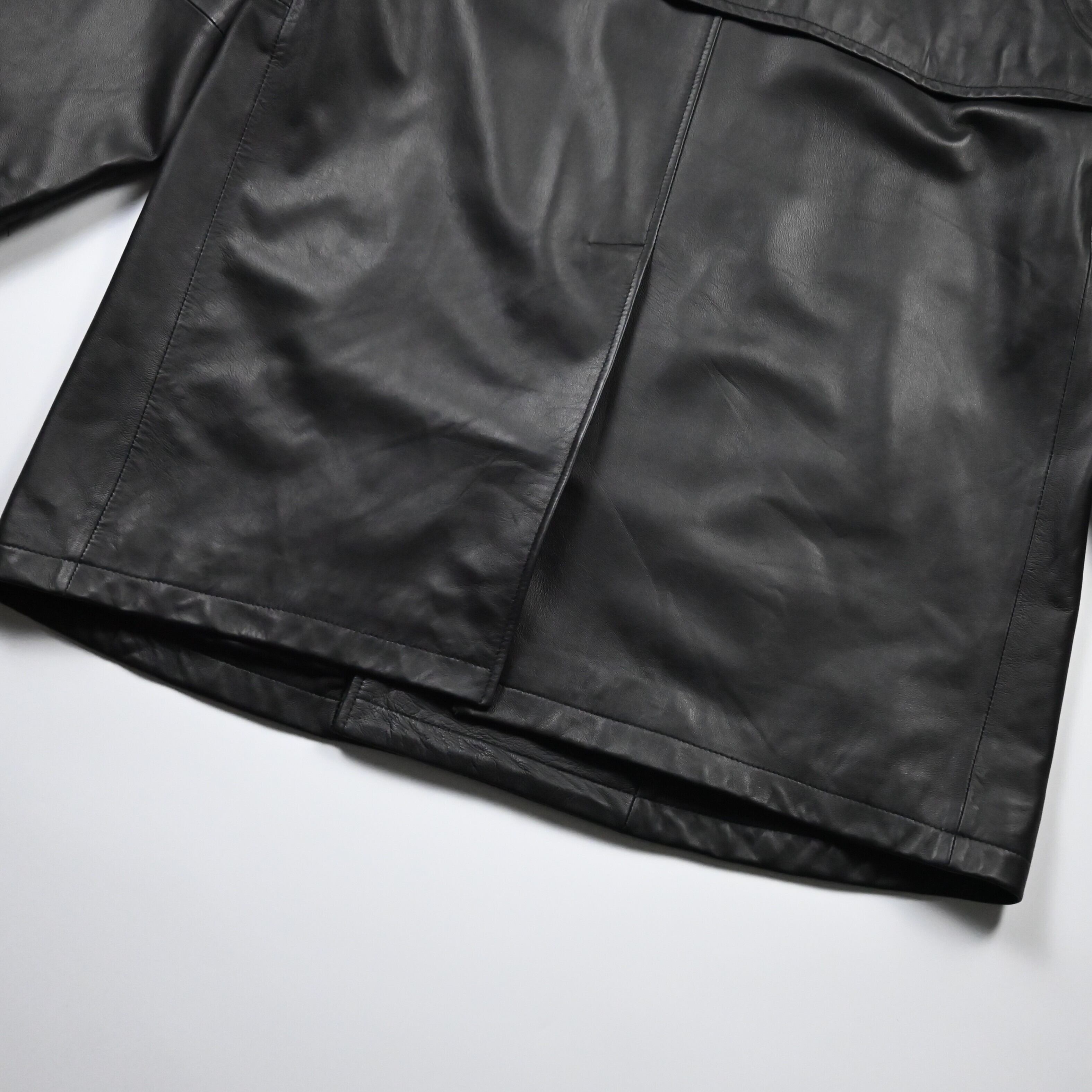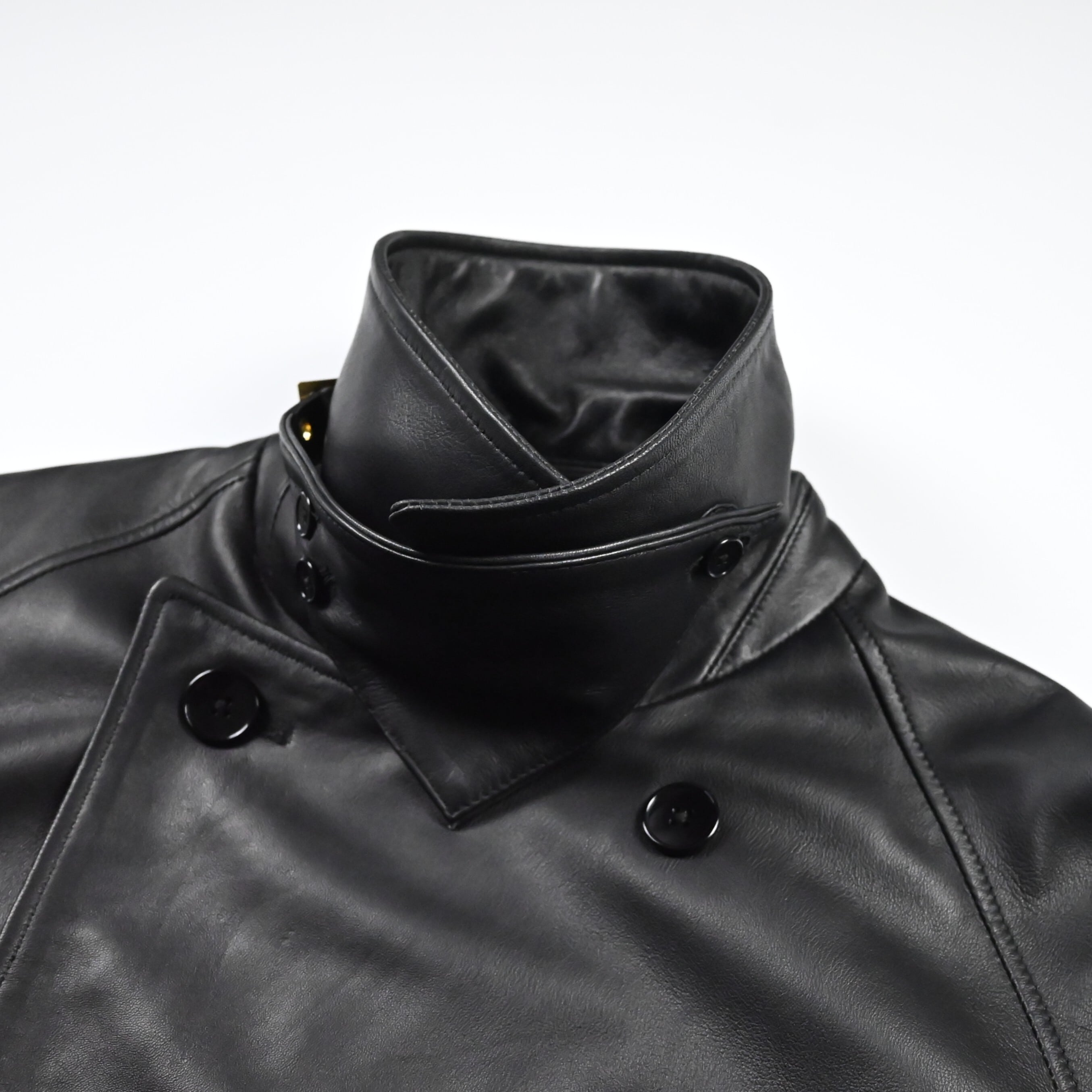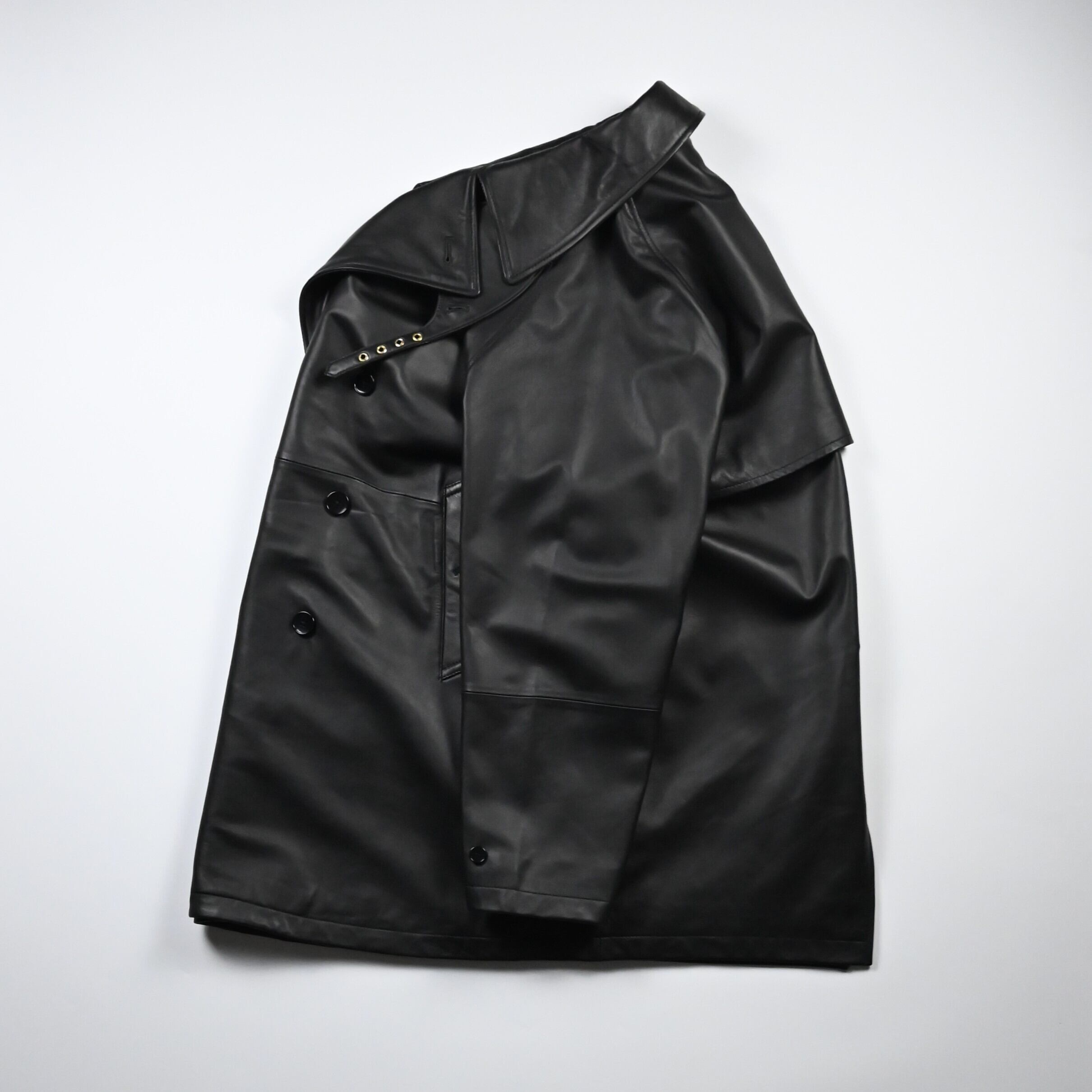 「LEATHER-COMFORTALE-PRODUCT」をコンセプトに、従来のレザーの硬さや着にくさなどのイメージを払拭するような柔らかなレザーの素材選びや人体とレザーの間の余白を大事にしたパターンメイキングを行う。