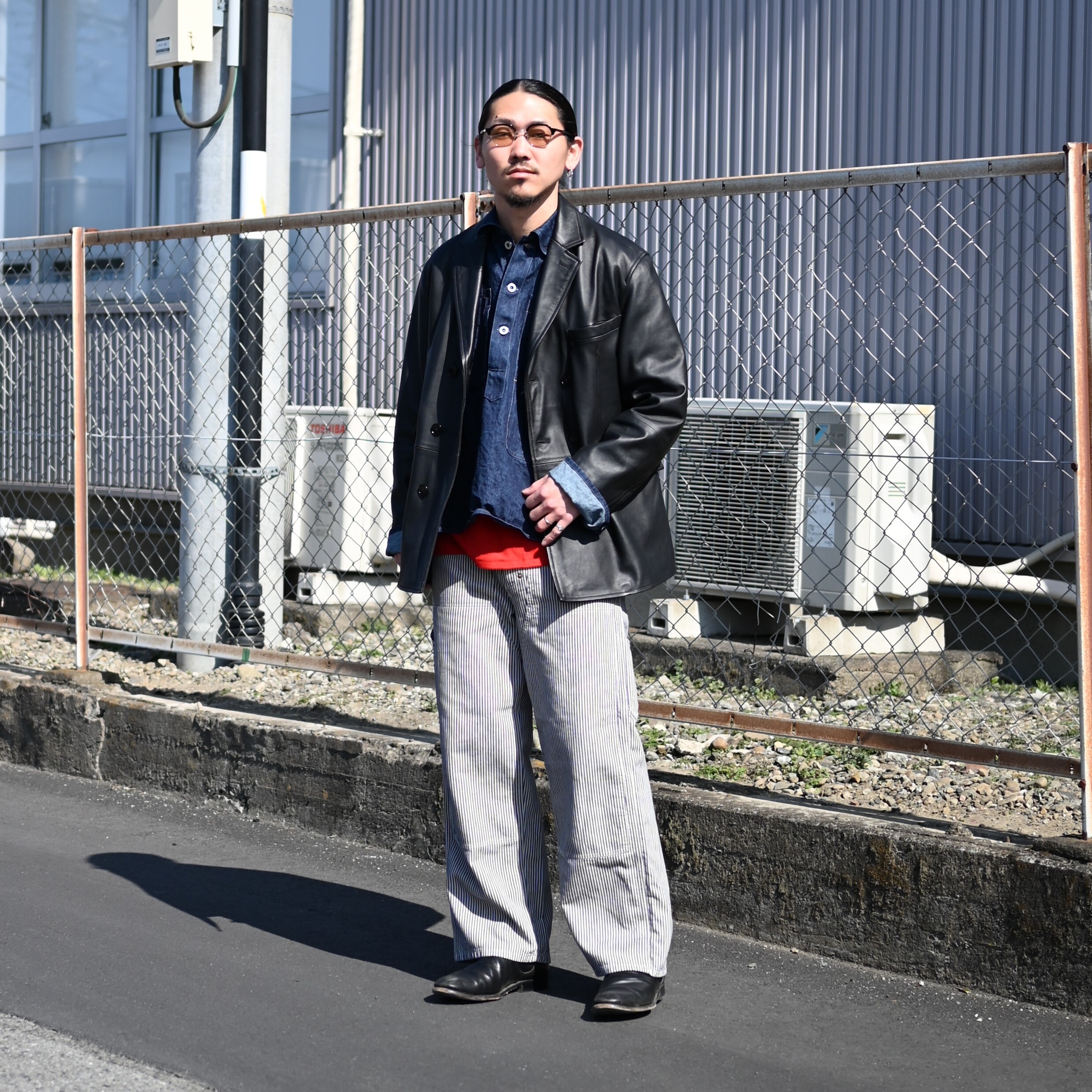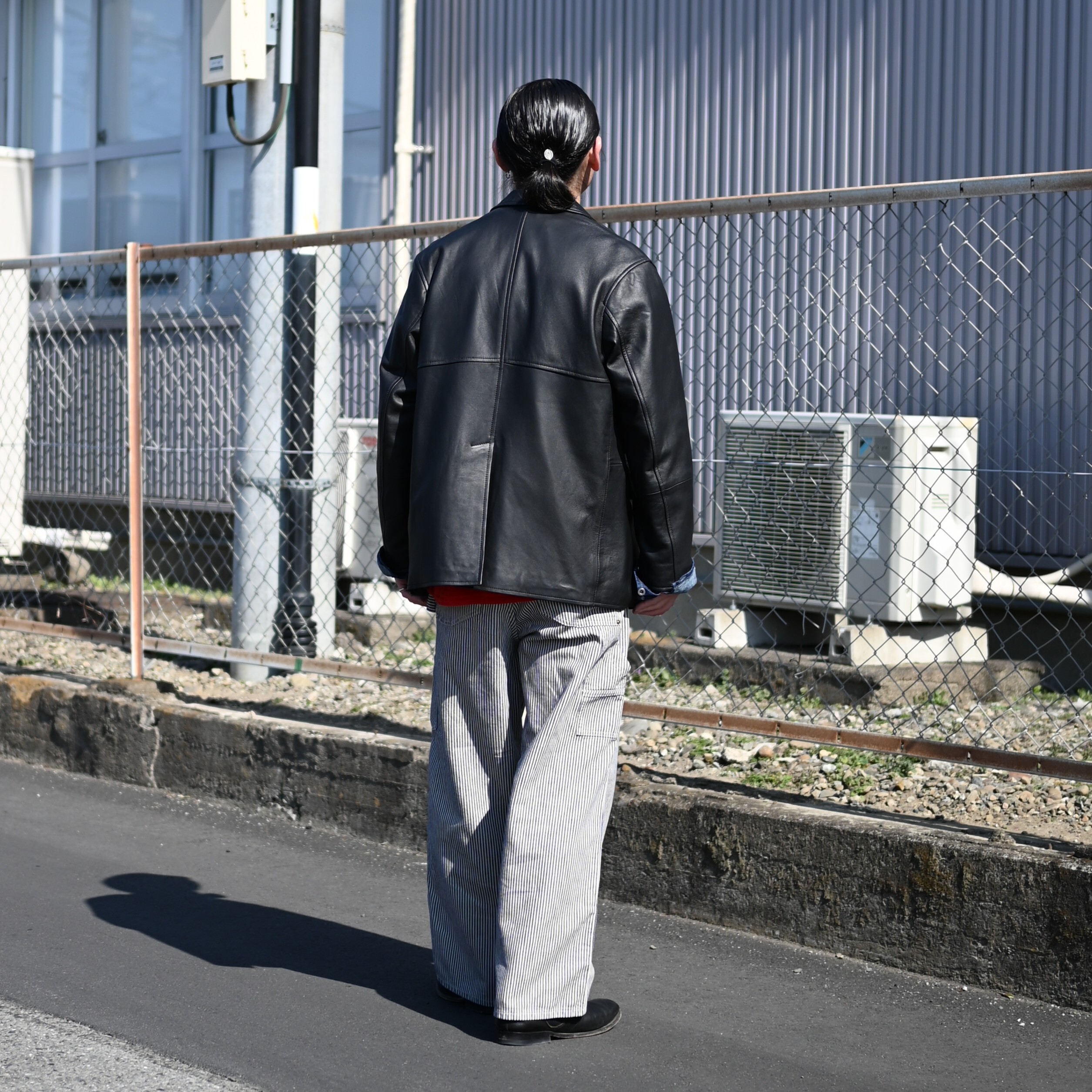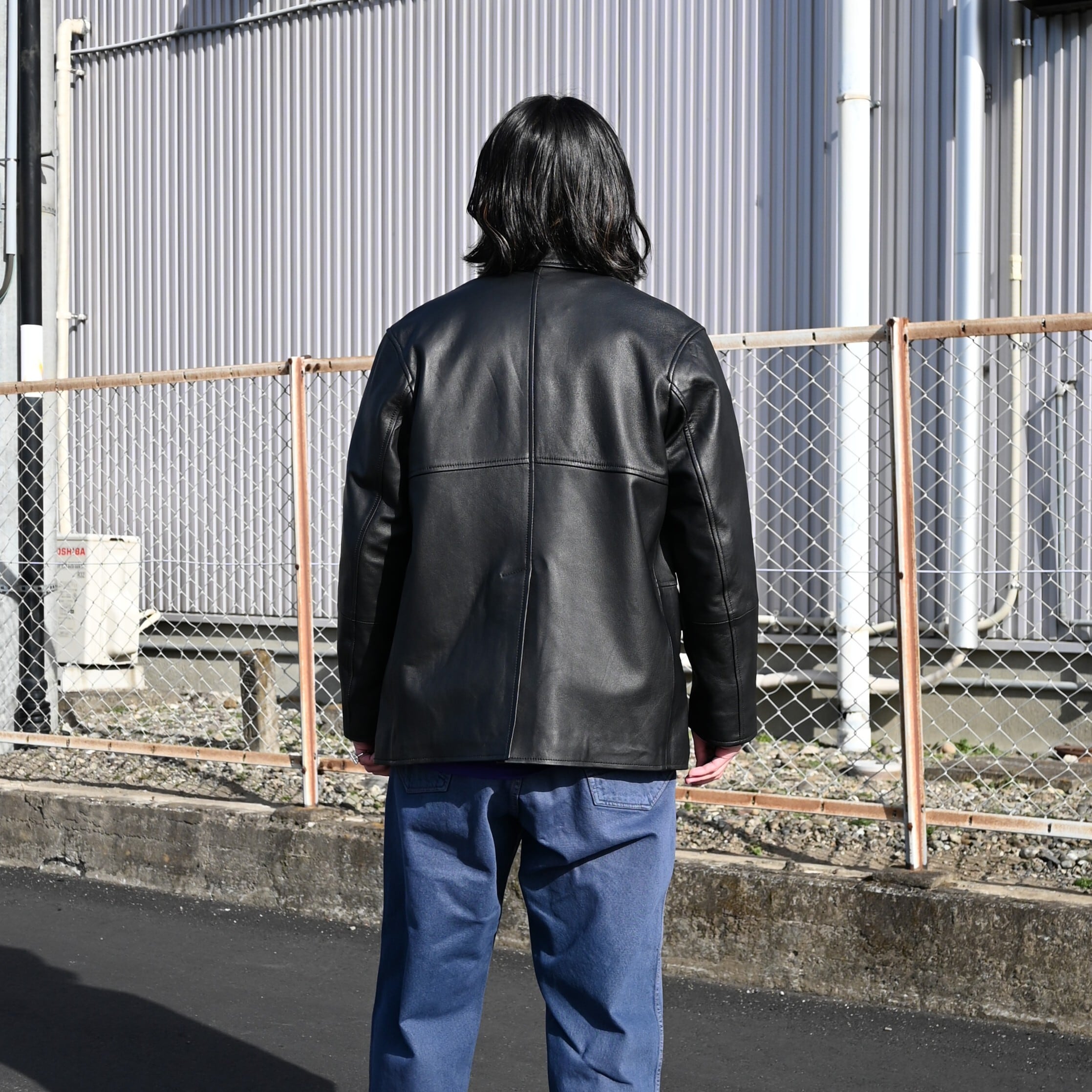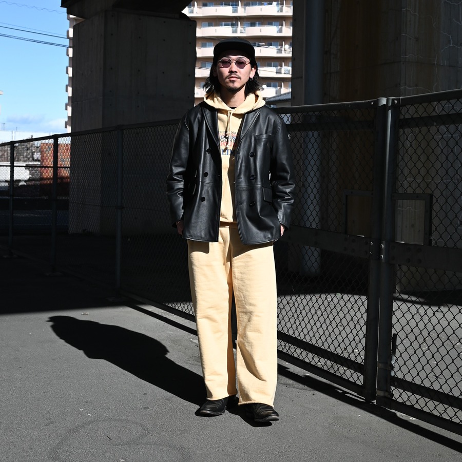 「LEATHER-COMFORTALE-PRODUCT」をコンセプトに、従来のレザーの硬さや着にくさなどのイメージを払拭するような柔らかなレザーの素材選びや人体とレザーの間の余白を大事にしたパターンメイキングを行う。