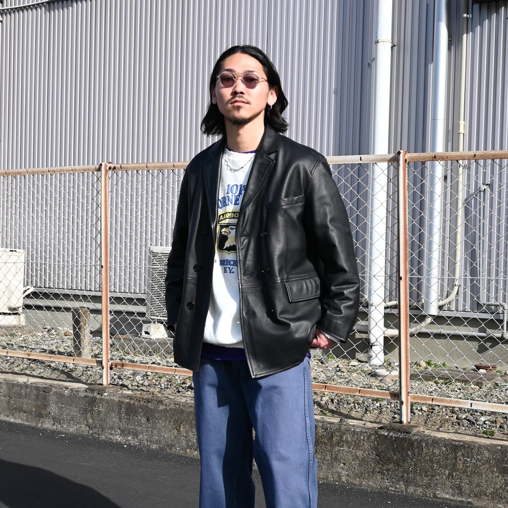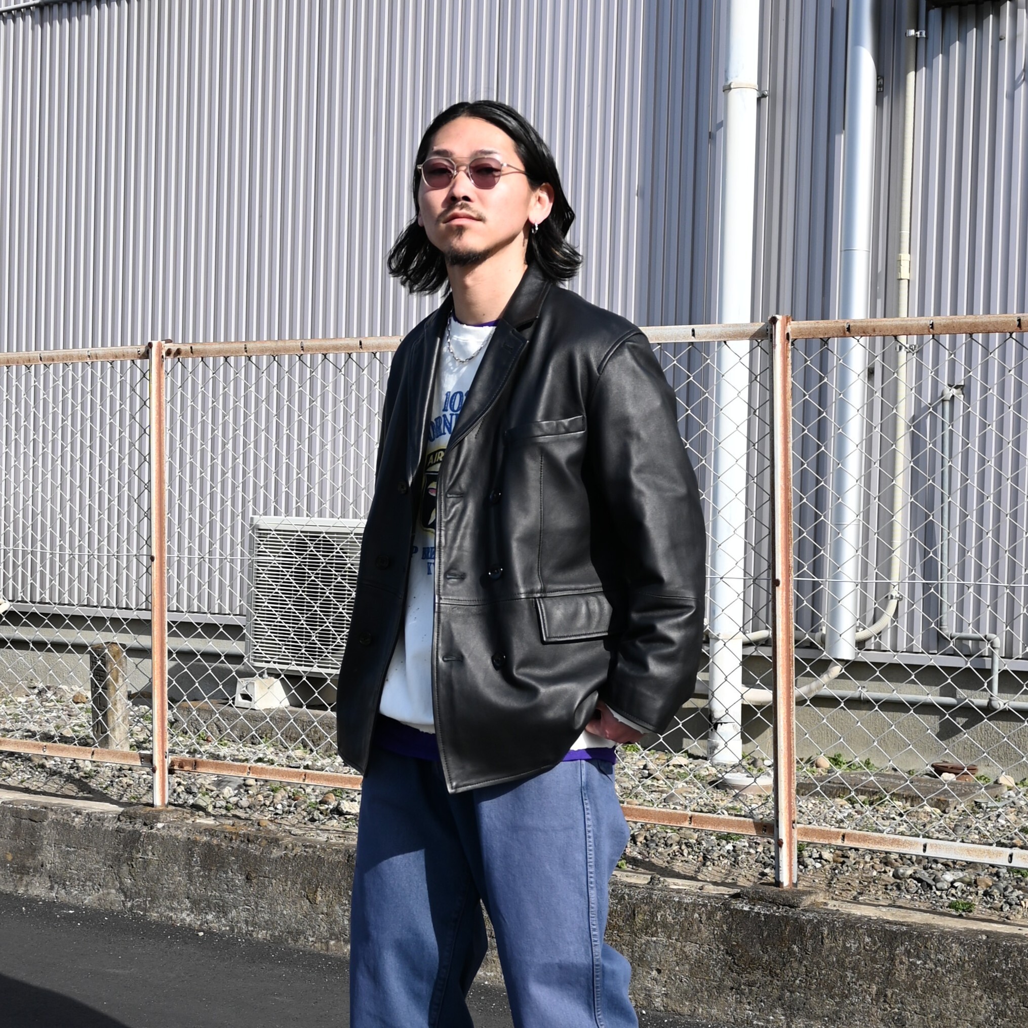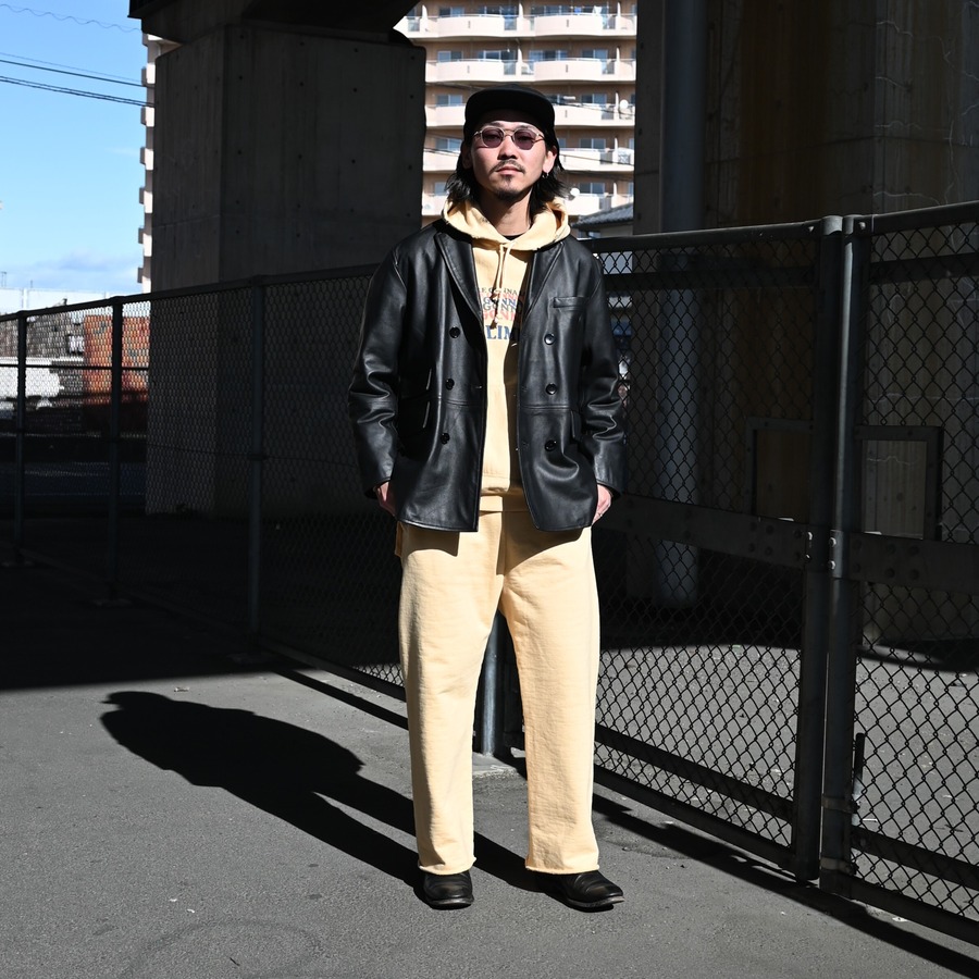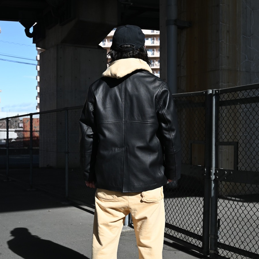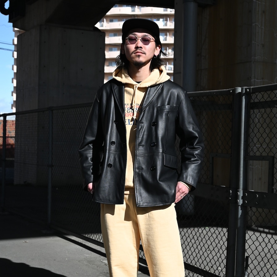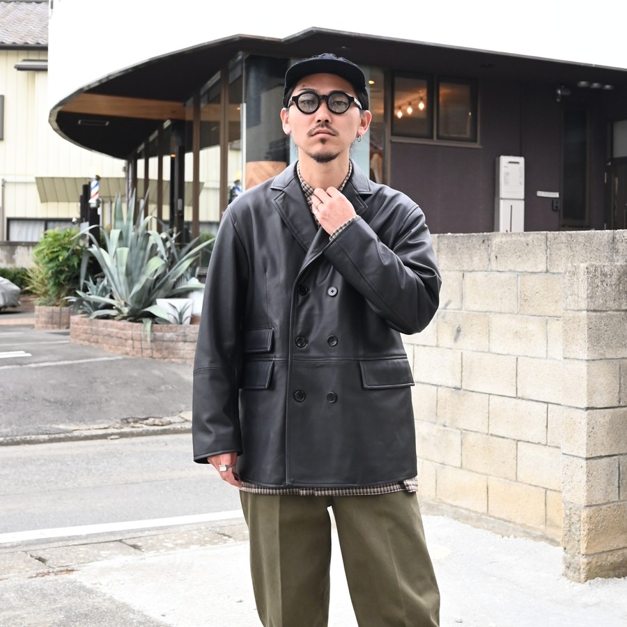 ・クラシックなダブルブレステッドにPコートの要素を織り交ぜたレザージャケット
