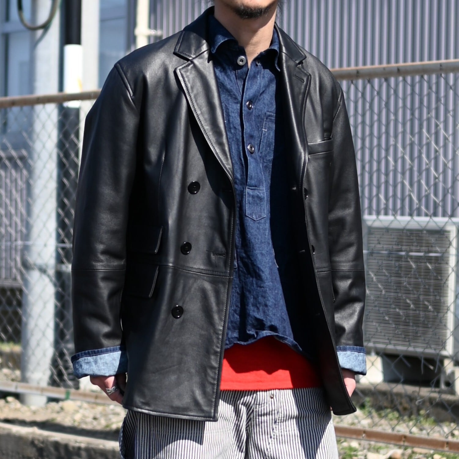 クラシックなダブルブレステッドにPコートの要素を織り交ぜたレザージャケット