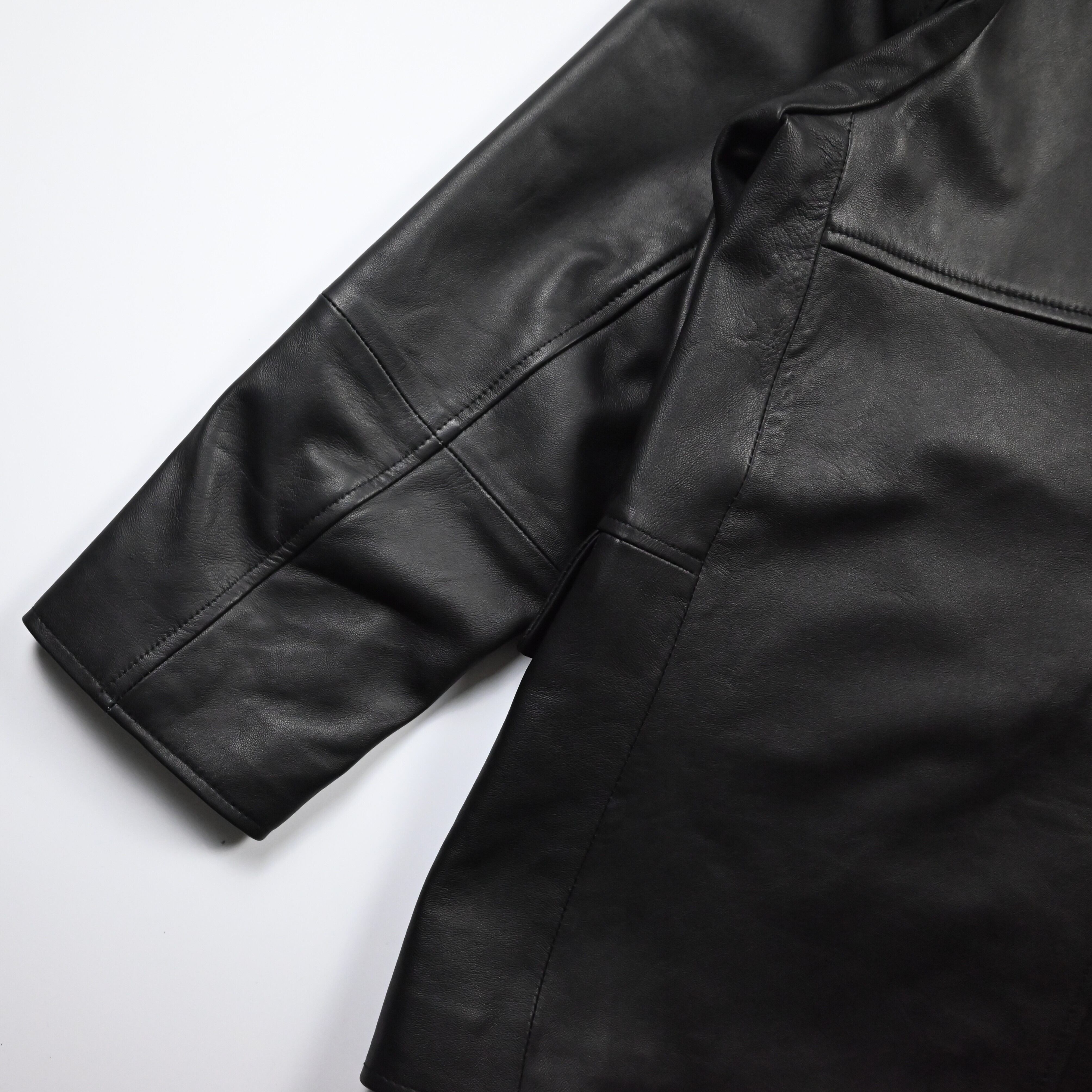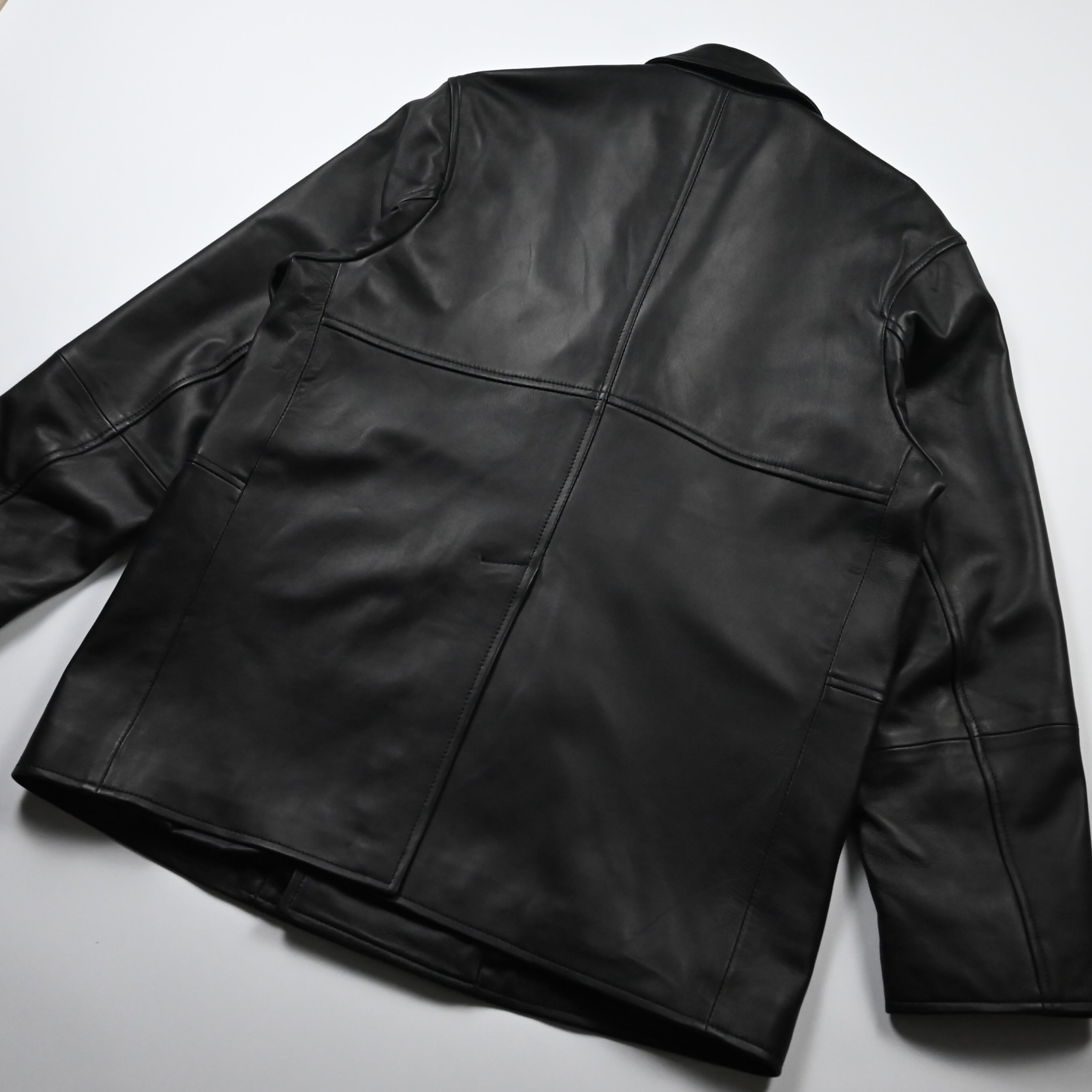 • A leather jacket that fuses the refined structure of a classic double-breasted style with design elements from the traditional pea coat.