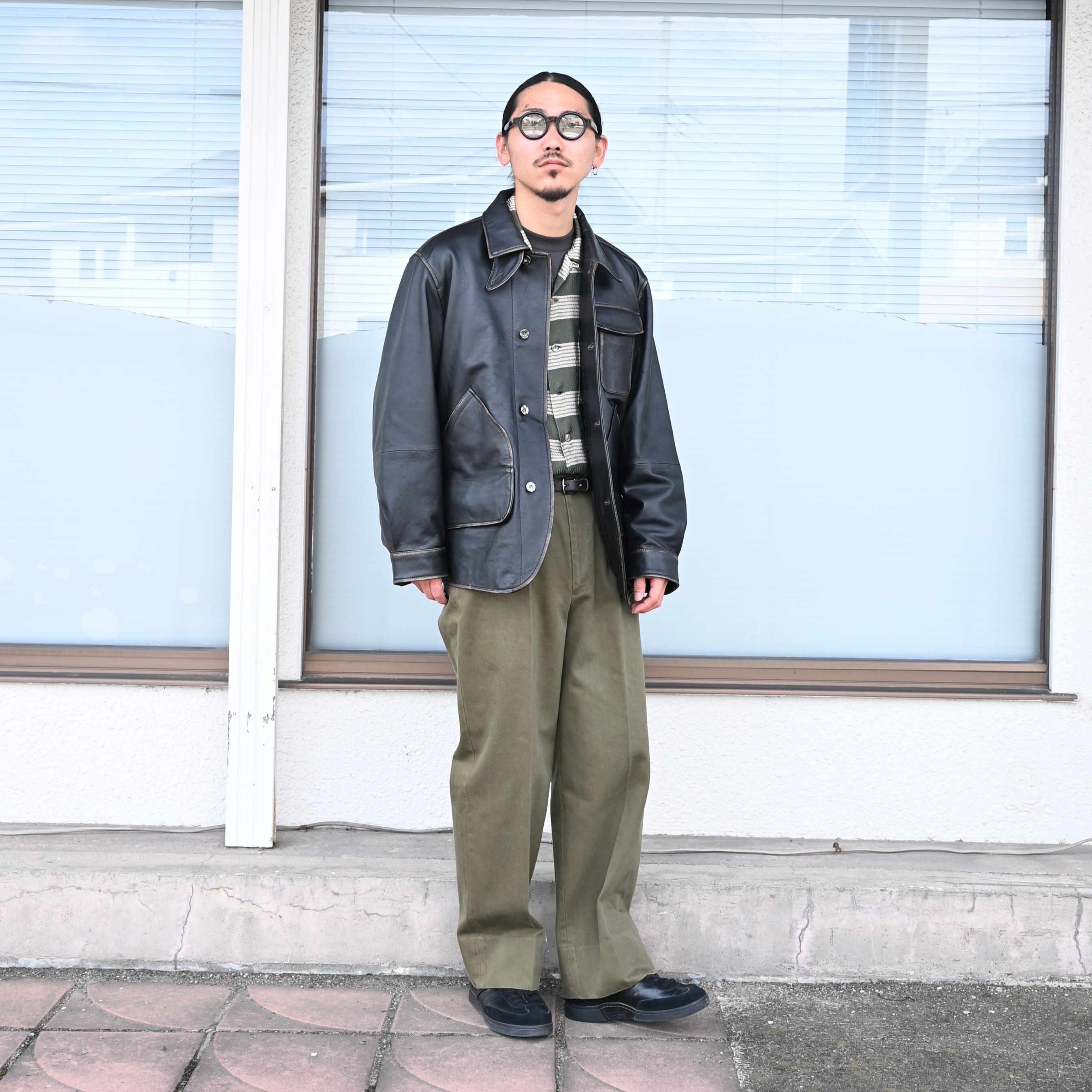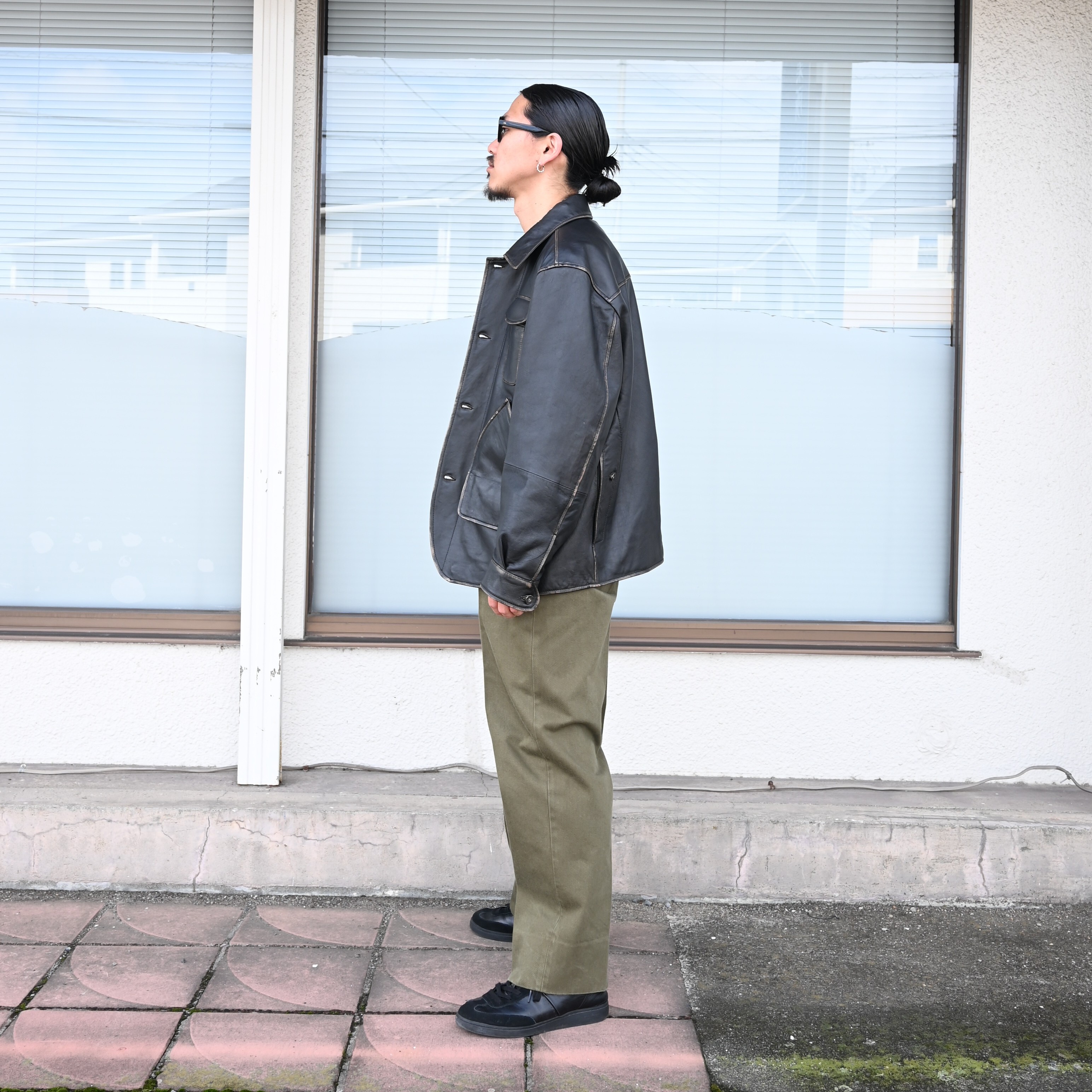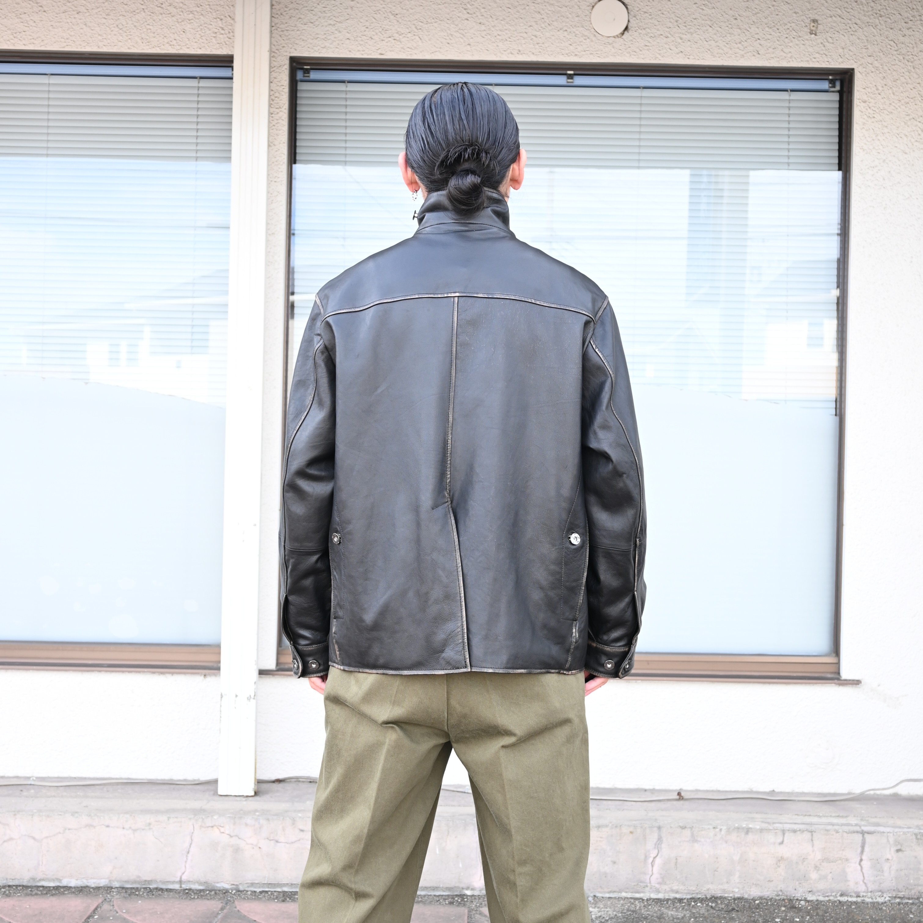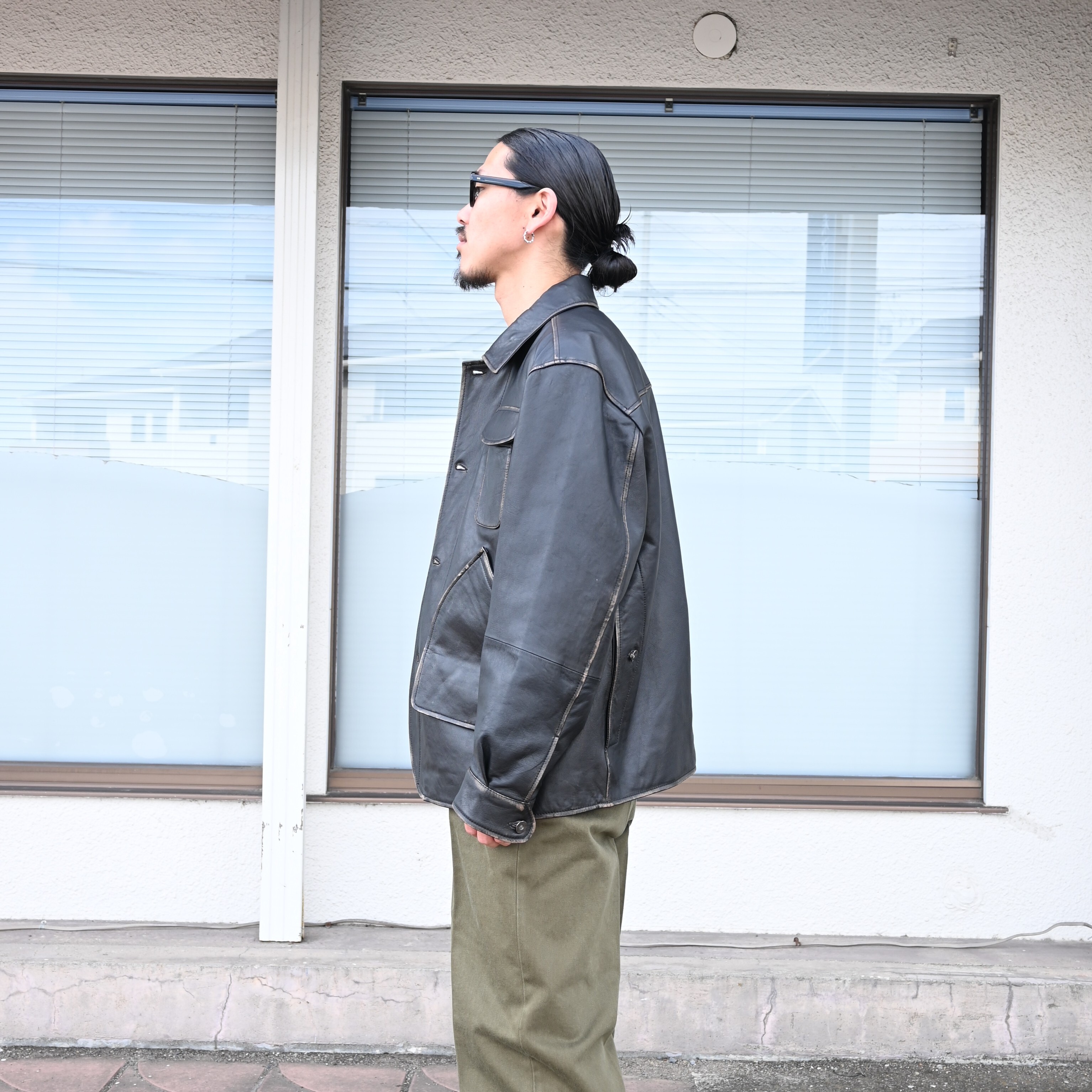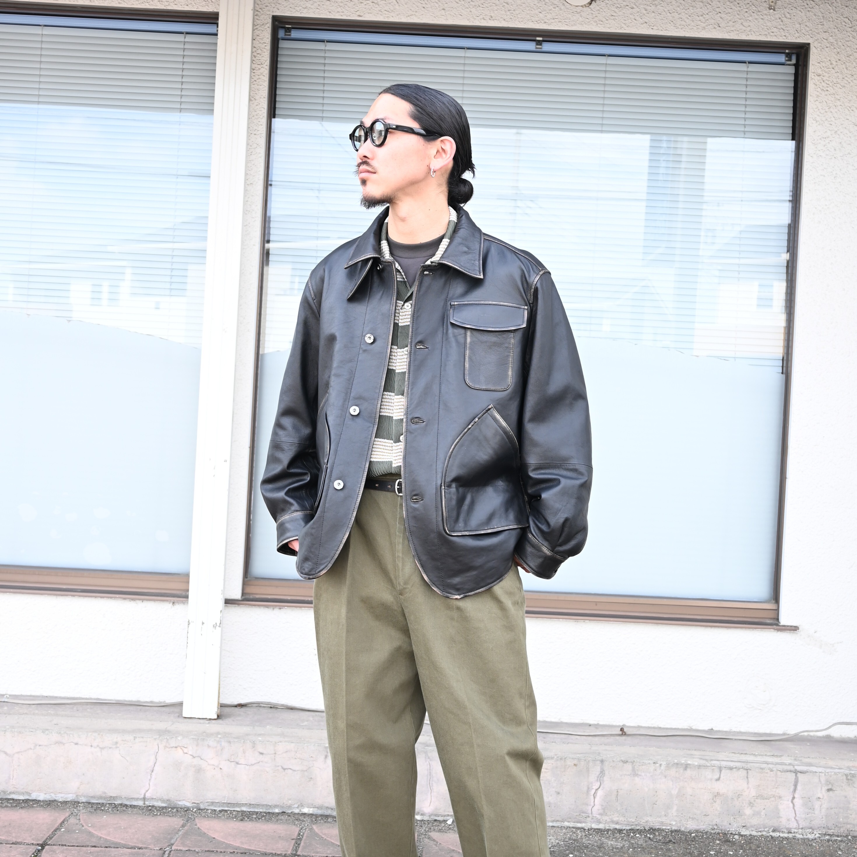 「LEATHER-COMFORTALE-PRODUCT」をコンセプトに、従来のレザーの硬さや着にくさなどのイメージを払拭するような柔らかなレザーの素材選びや人体とレザーの間の余白を大事にしたパターンメイキングを行う。