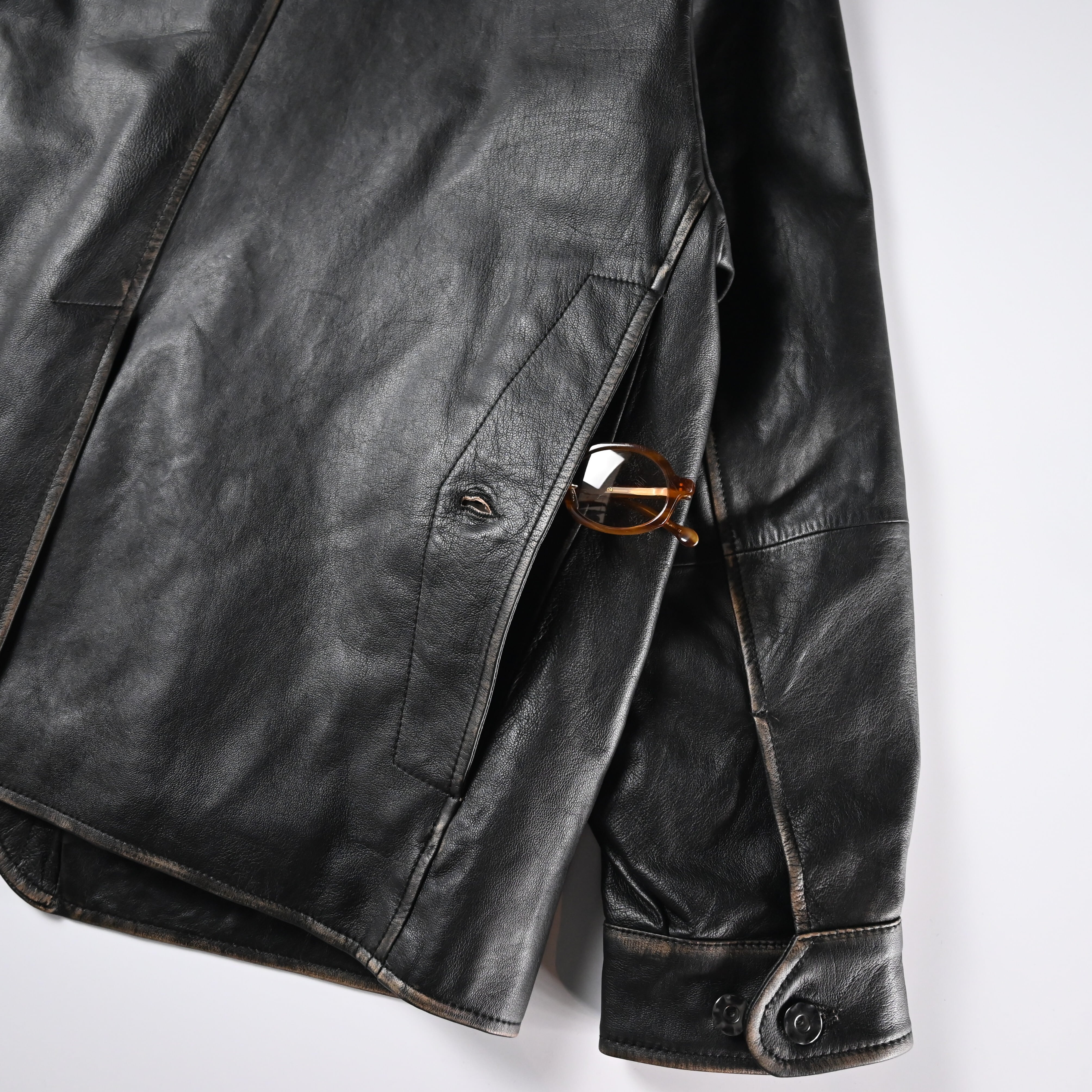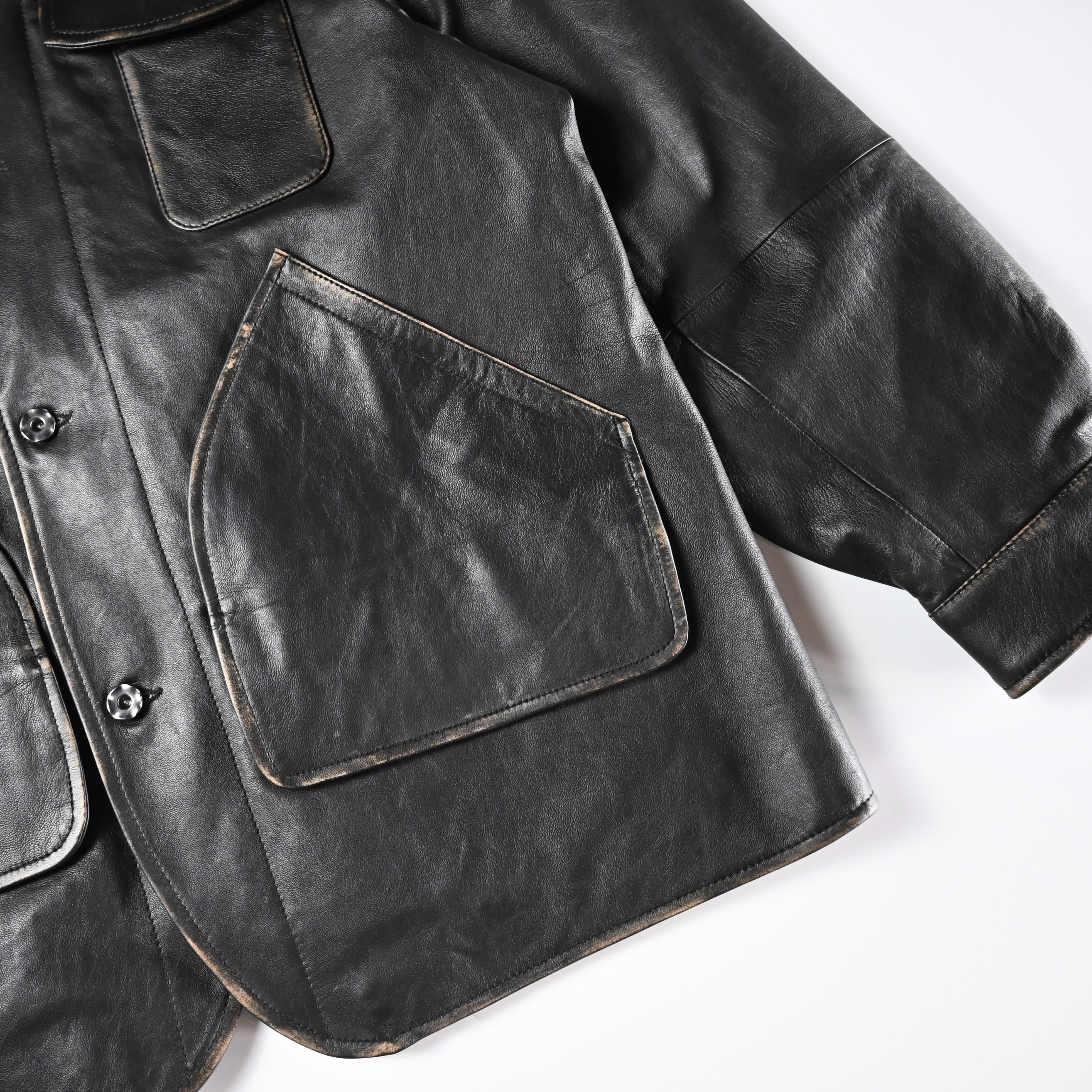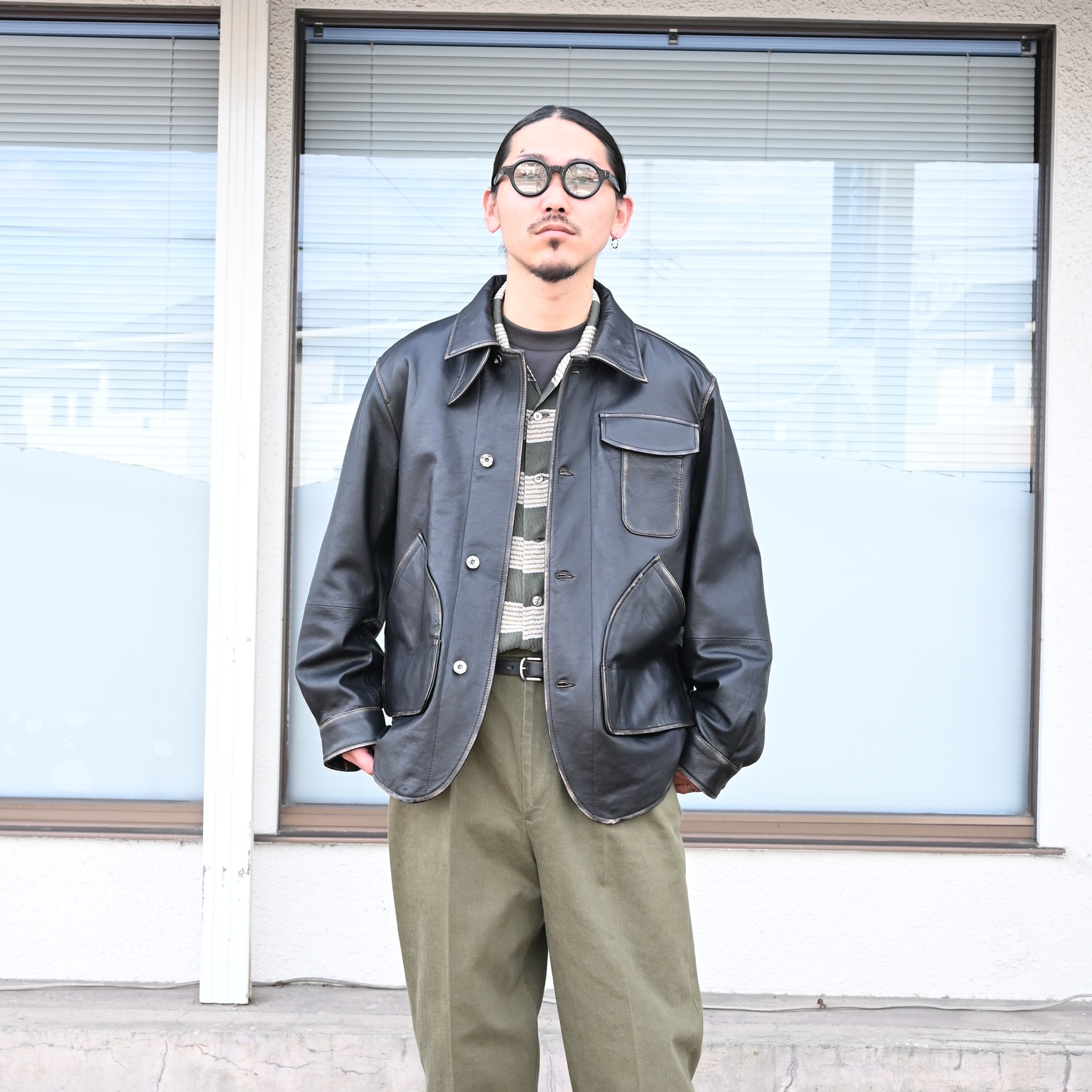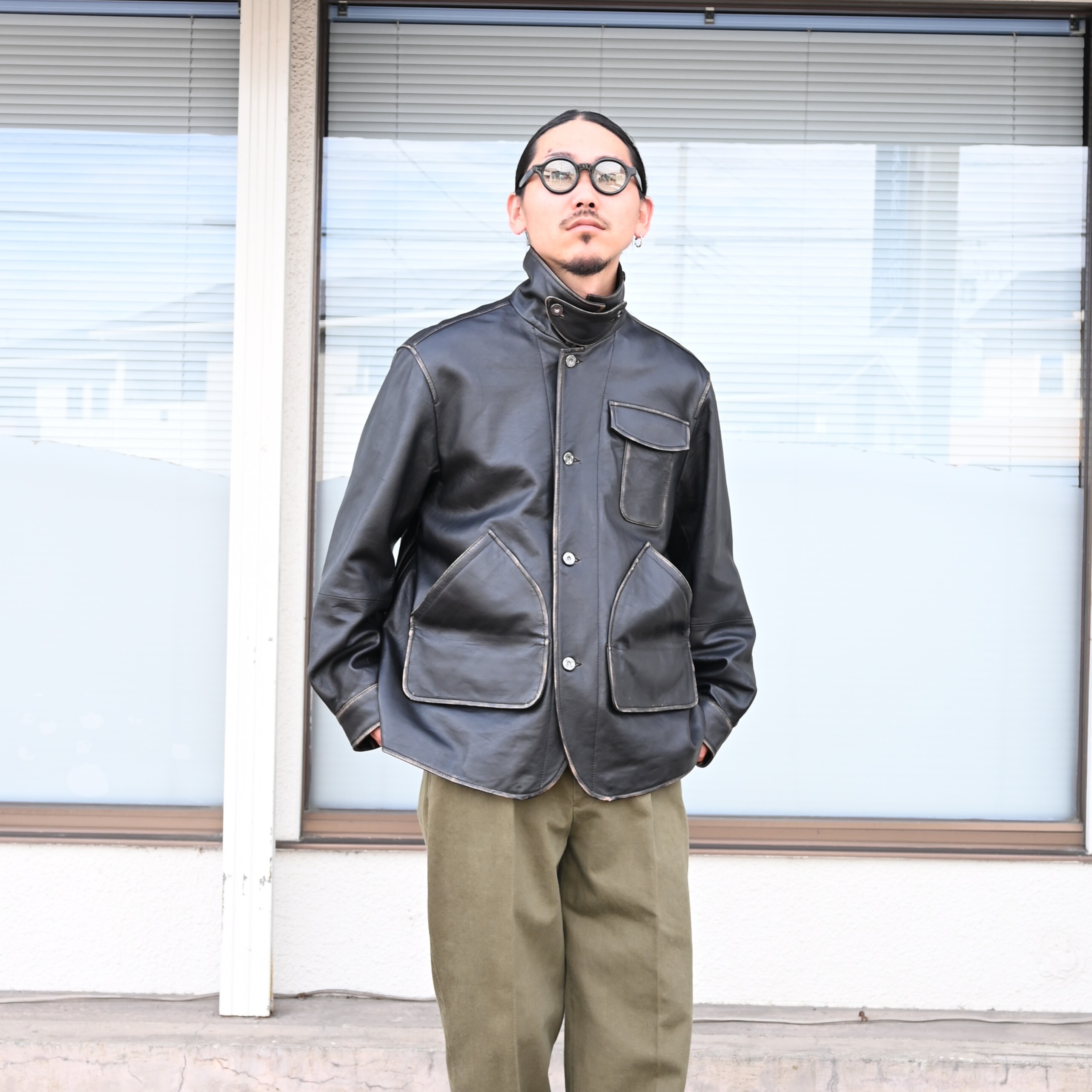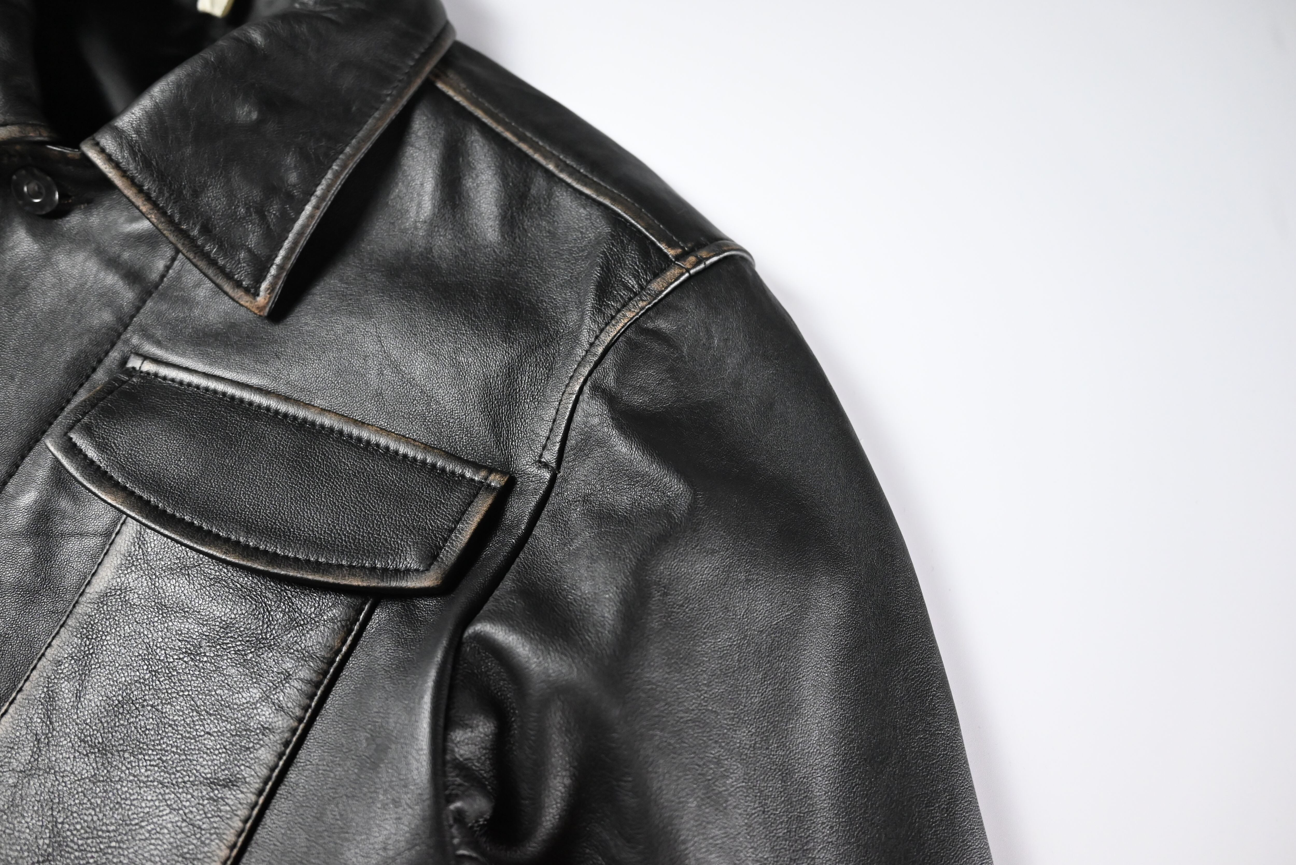 イギリス製シープ茶芯レザーを使用したハンティングジャケットベースのレザー
