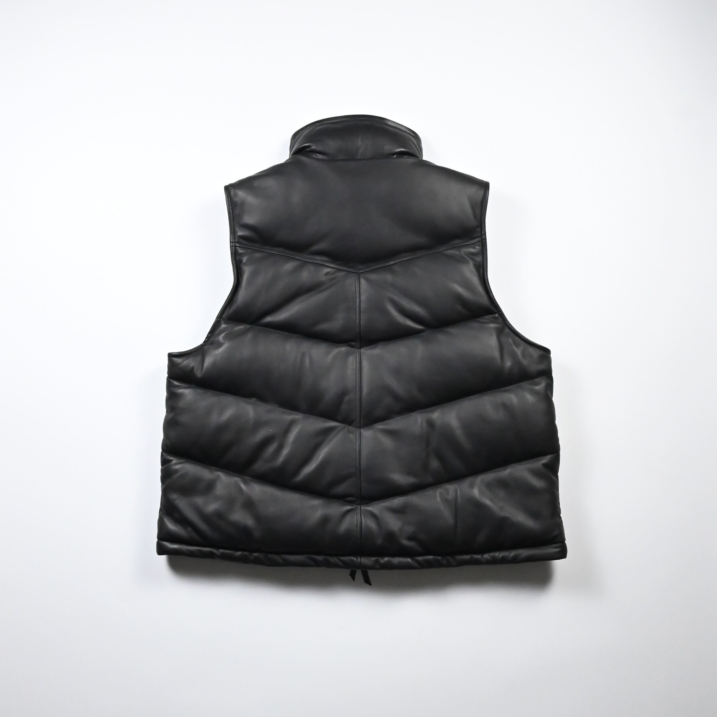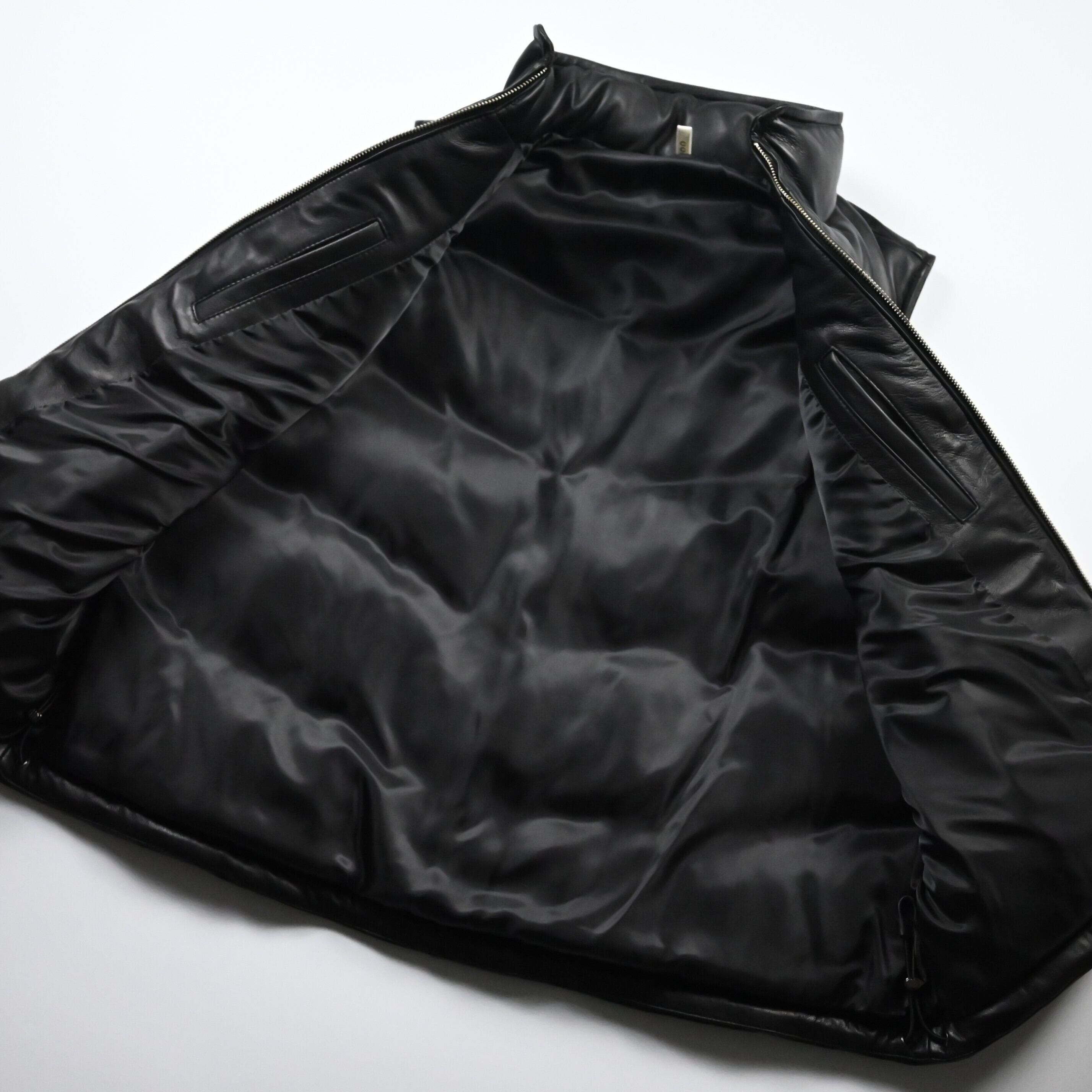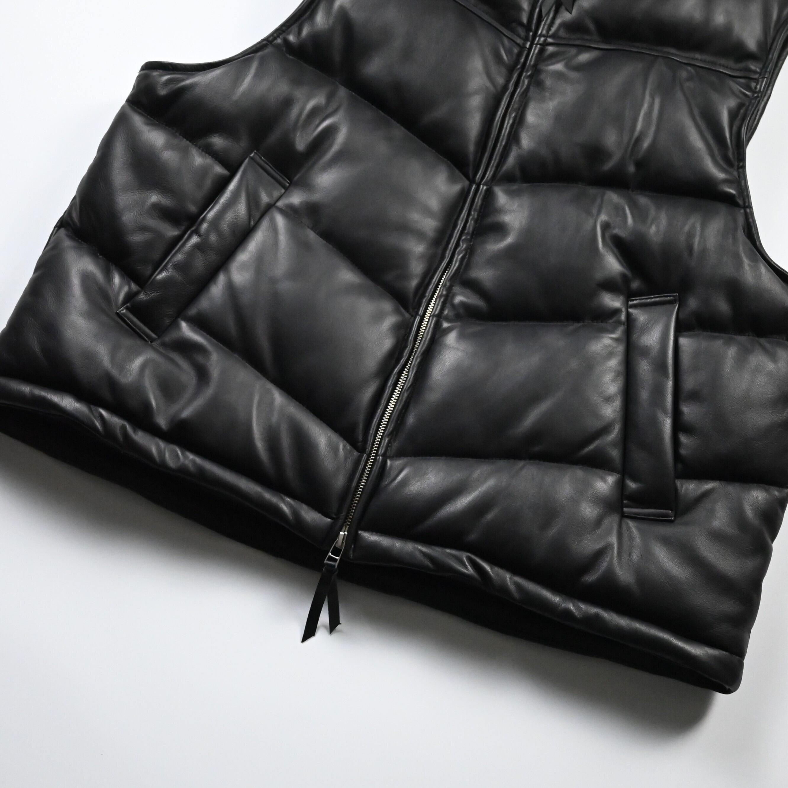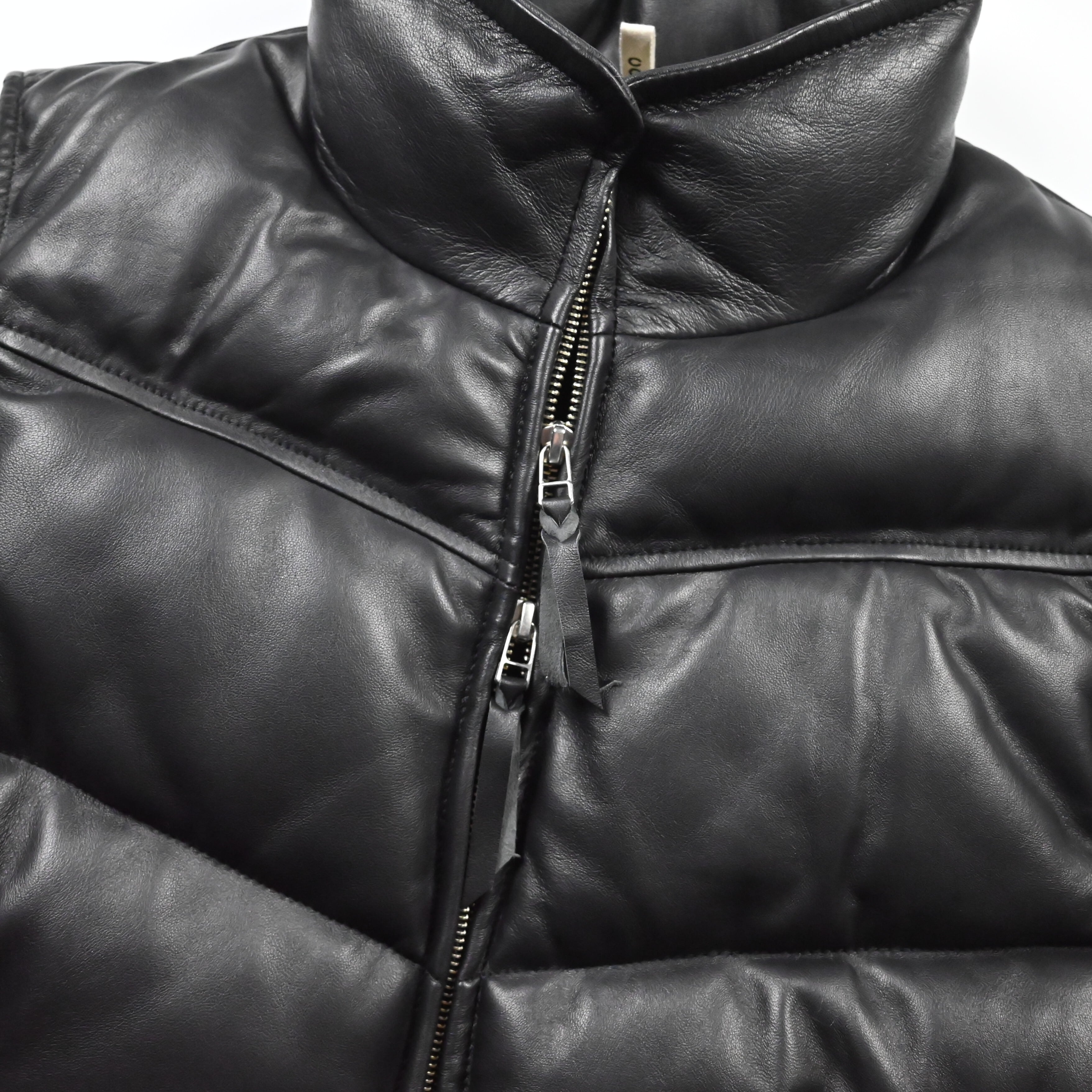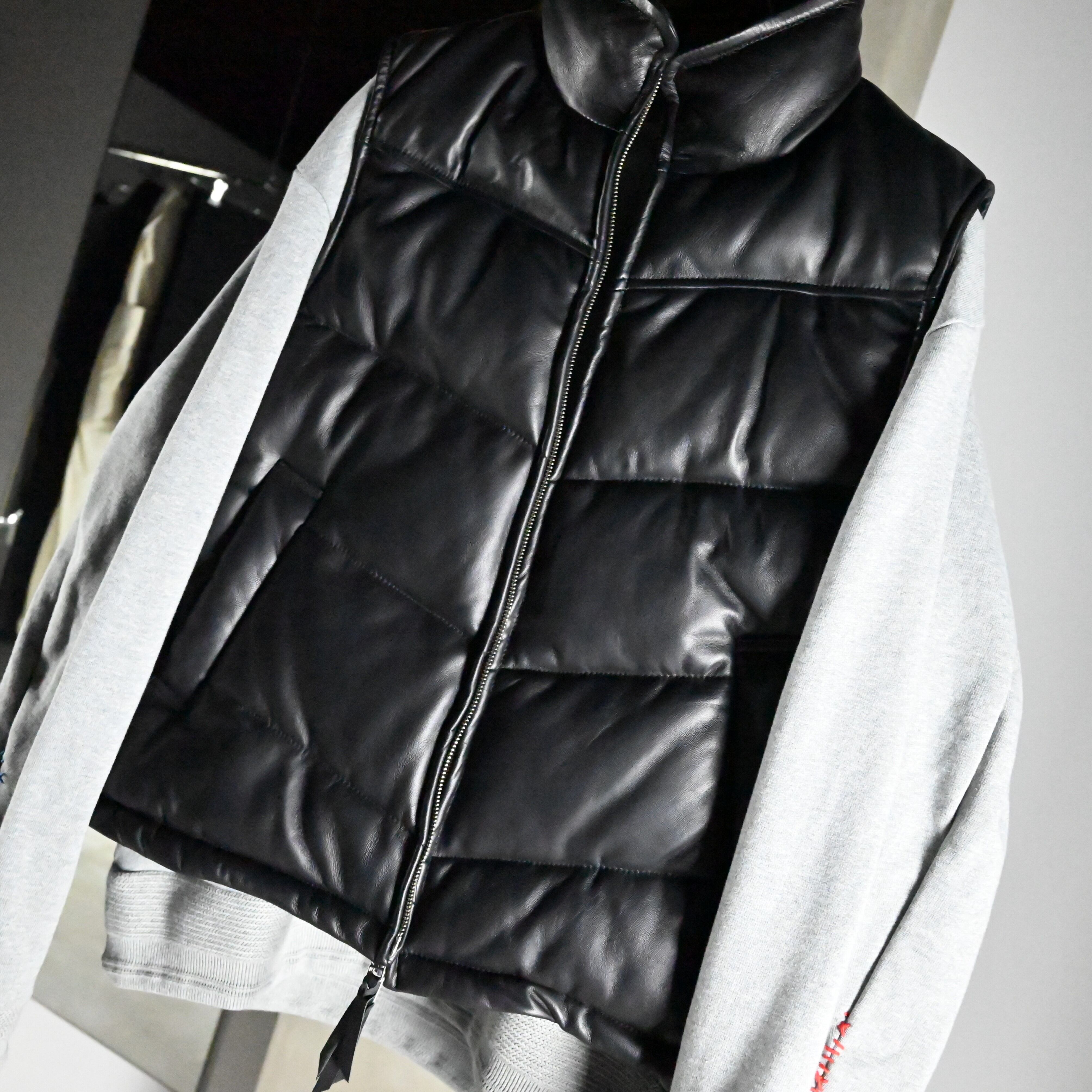 70年代のクラシックなダウンベストを参考にしたレザーパディングベスト