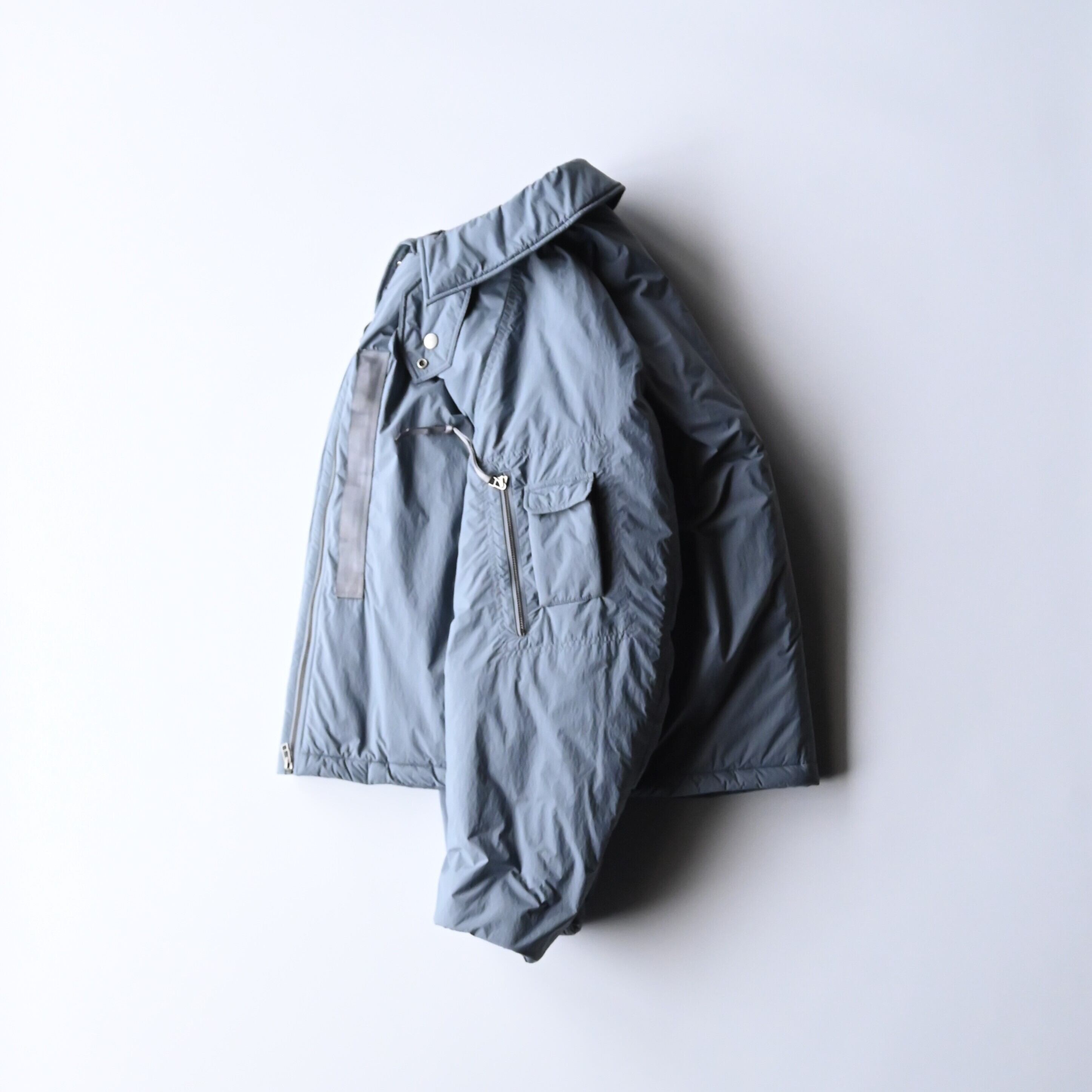 ・脇下、肘内側の中綿を抜き、脇下にはファスナーで開閉できるベンチレーションを配置することで、暖かさを保ちながら湿気