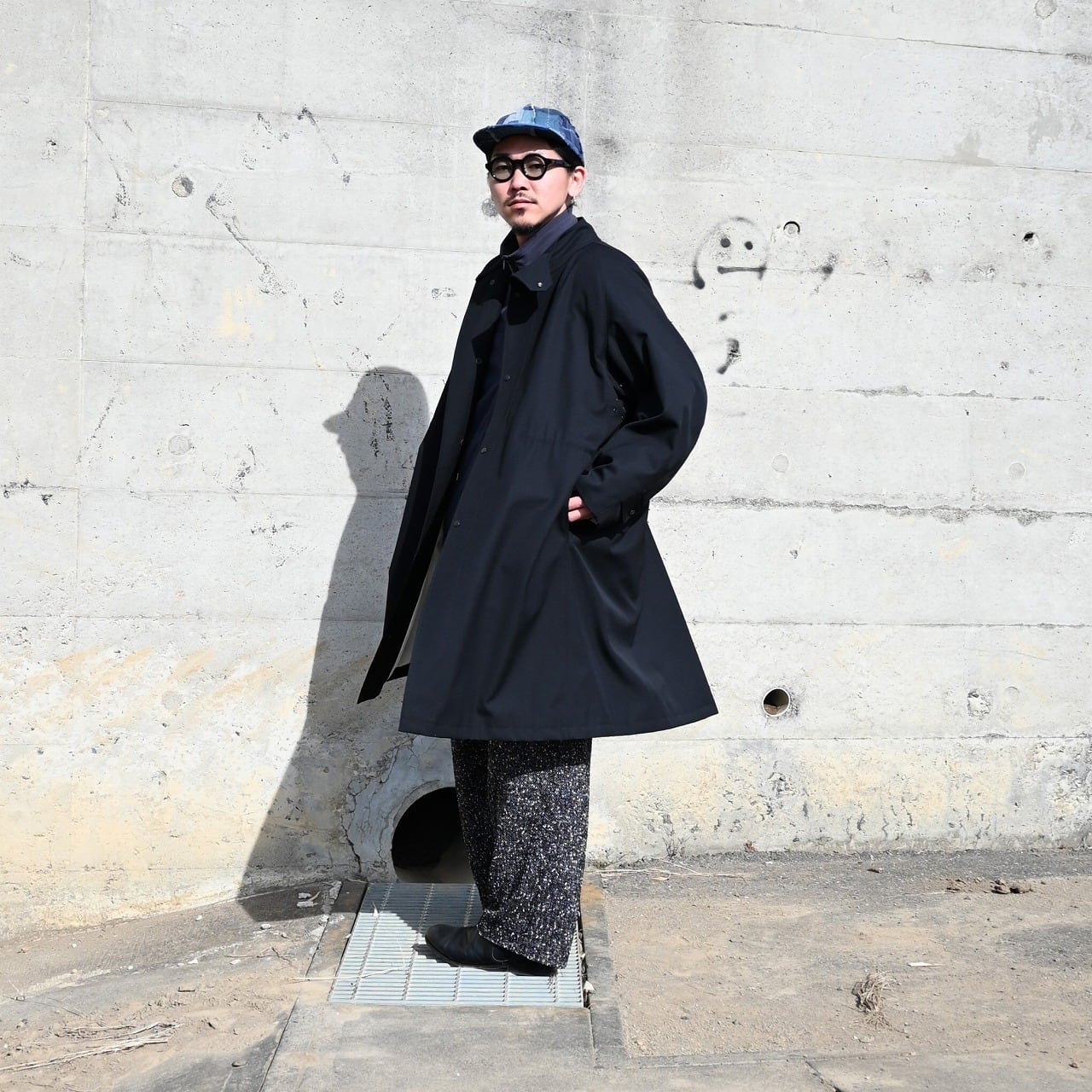 バーバリークロスを撥⽔加⼯したレインコート