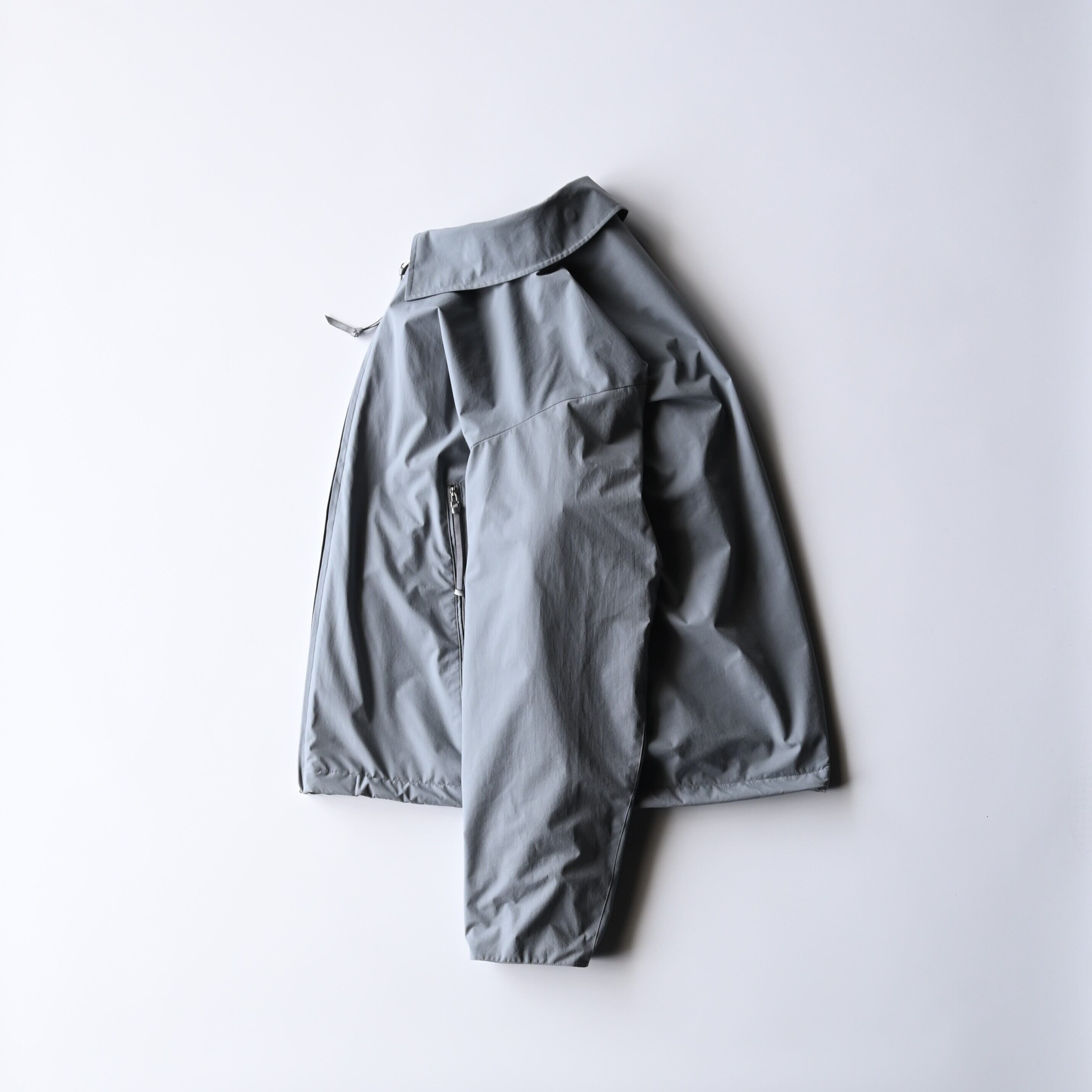 Equipped with a drawcord at the hem, serving both silhouette adjustment and wind-stopping functions.