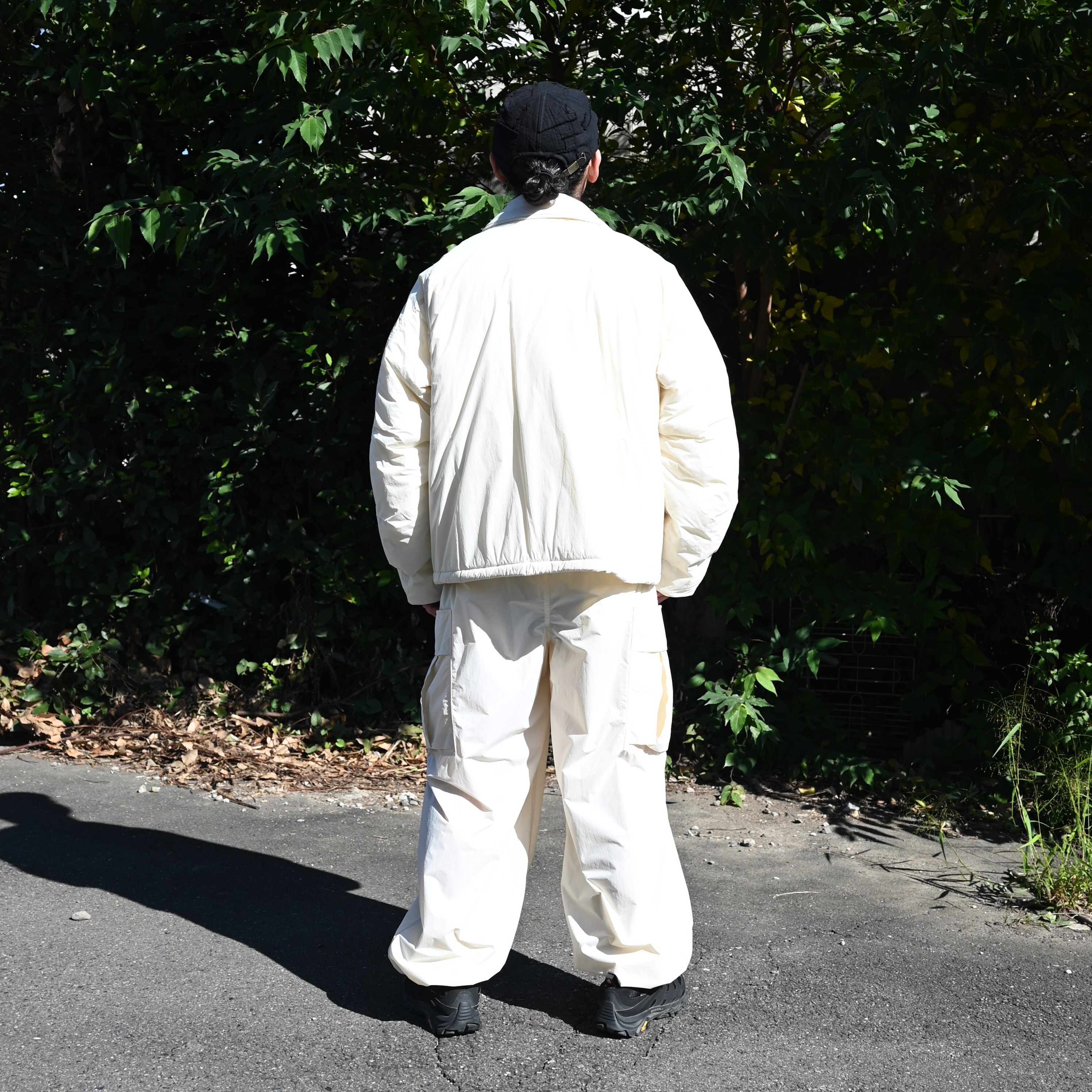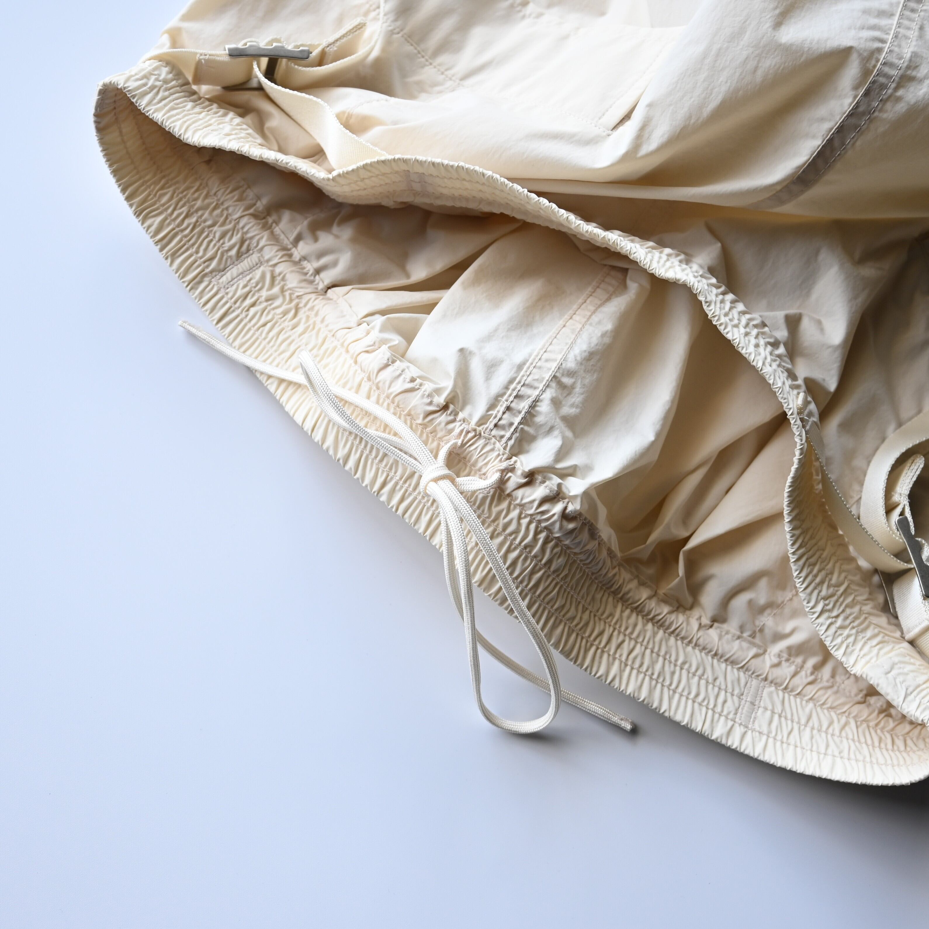 ・裾⼝に配置したゴムスピンドルは、機能的シルエット調節が可能
