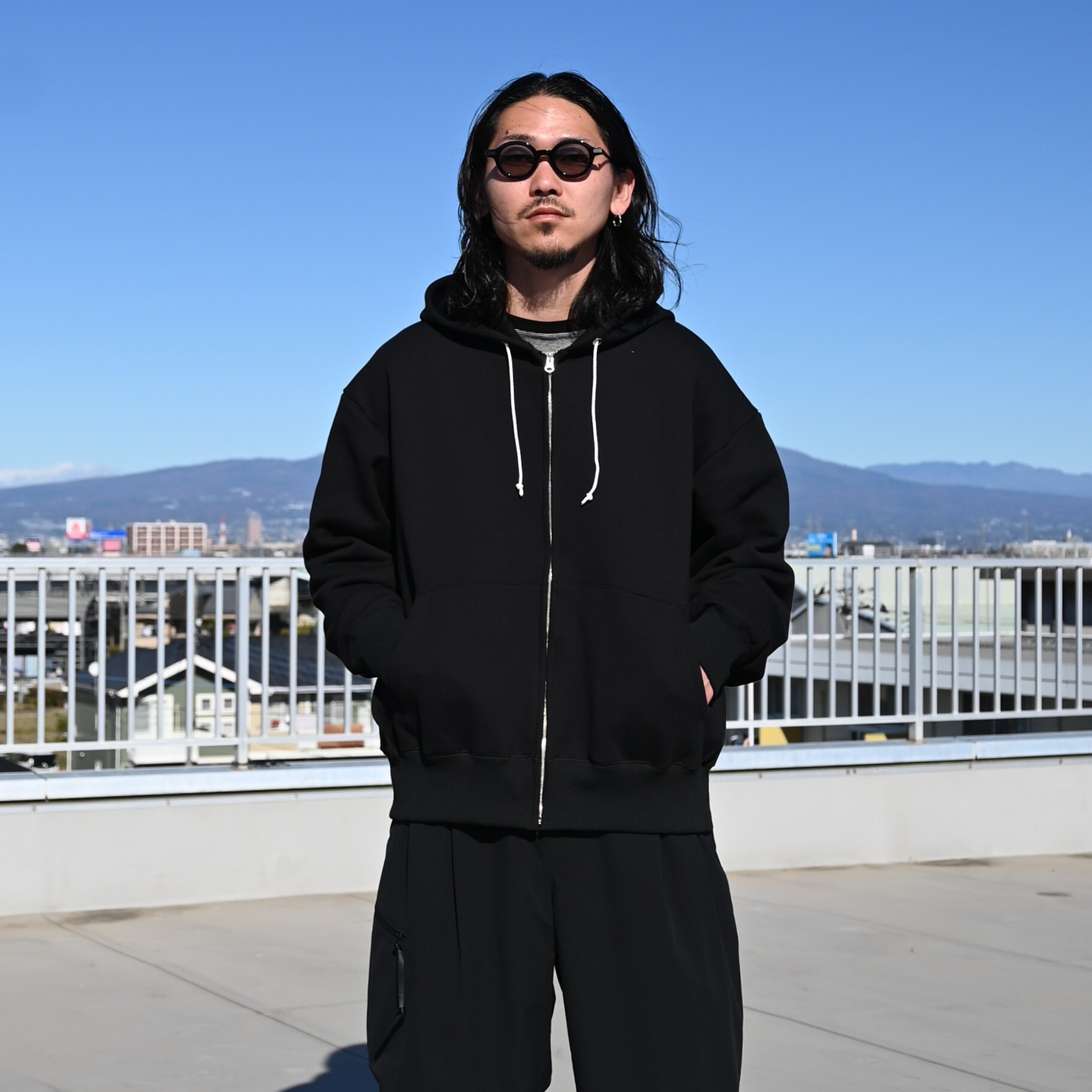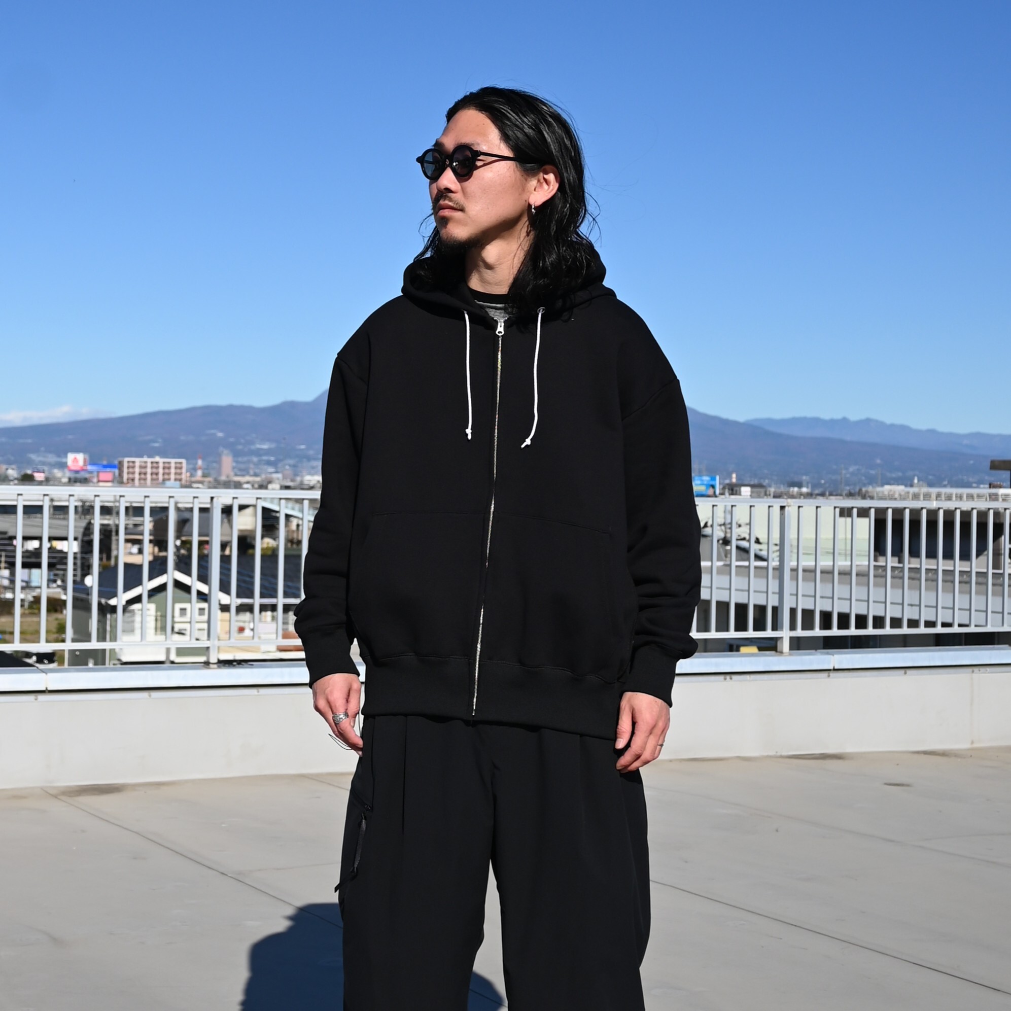 ・太番手の糸を度目を詰めて編み上げた厚みのある生地が特徴のジップアップフーディー