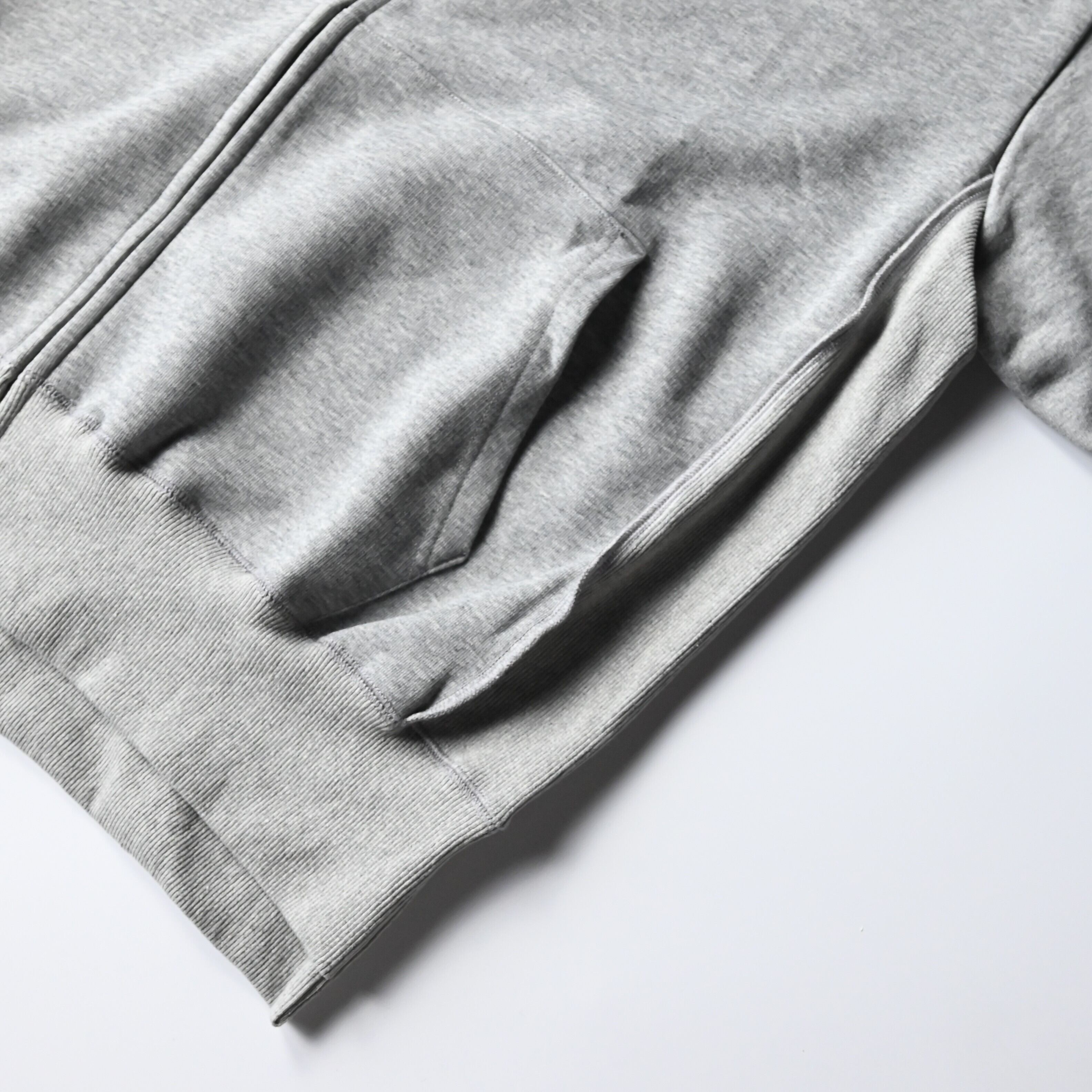・太番手の糸を度目を詰めて編み上げた厚みのある生地が特徴のジップアップフーディー