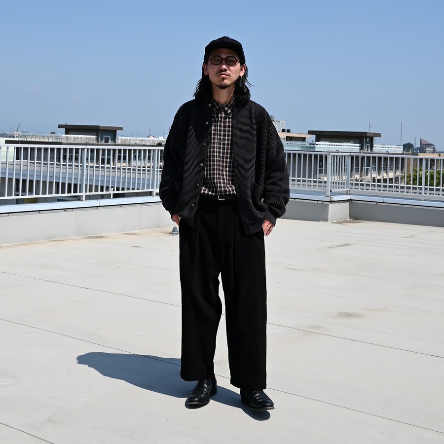 ・着用時に肩が落ちて柔らかな印象になる様にYASHIKIでは定番となった着物のパターンをオマージュして仕上げている