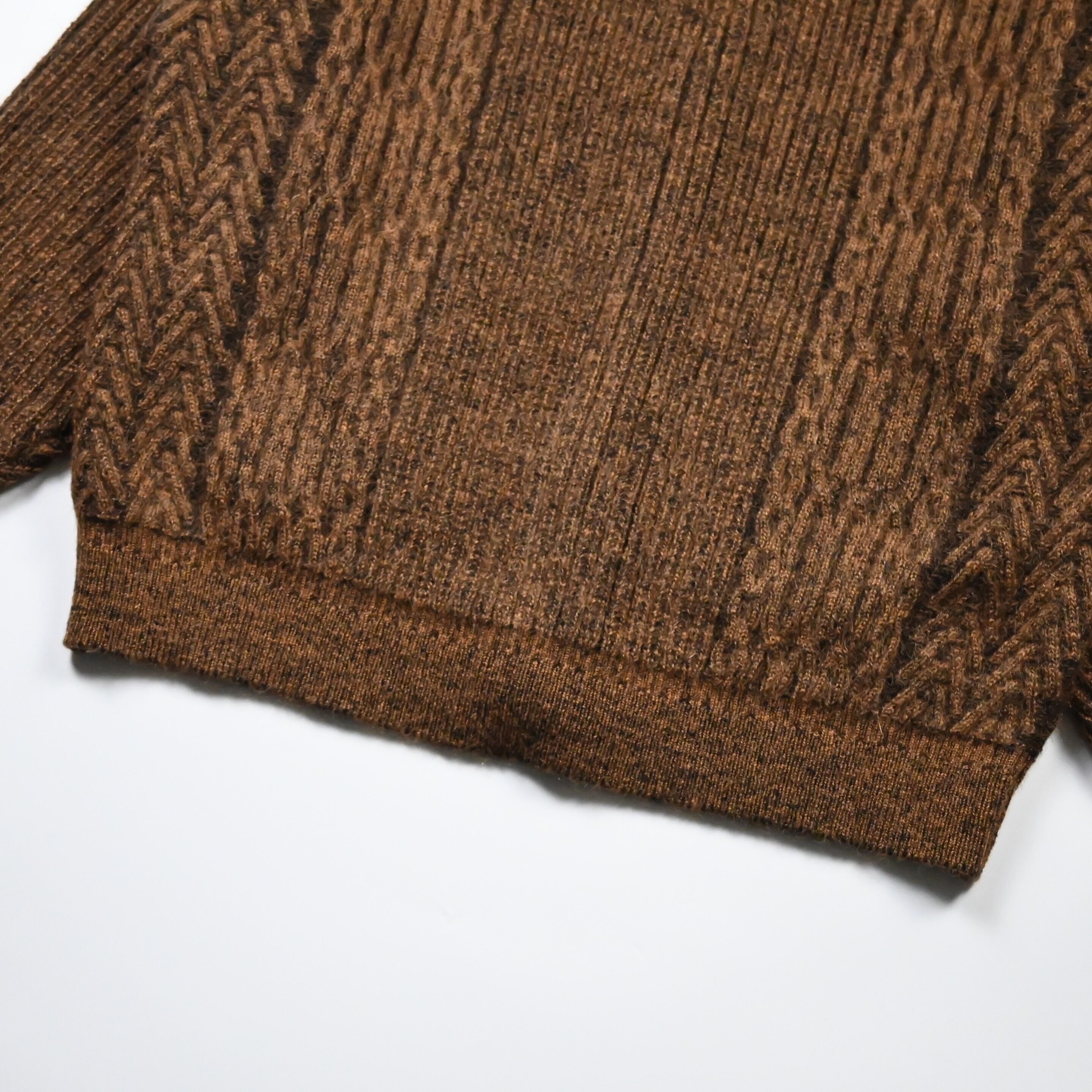 • Knitted using a plating technique — a method where different yarns are used on the front and back sides — creating a rich, dimensional look through two-tone knitting.