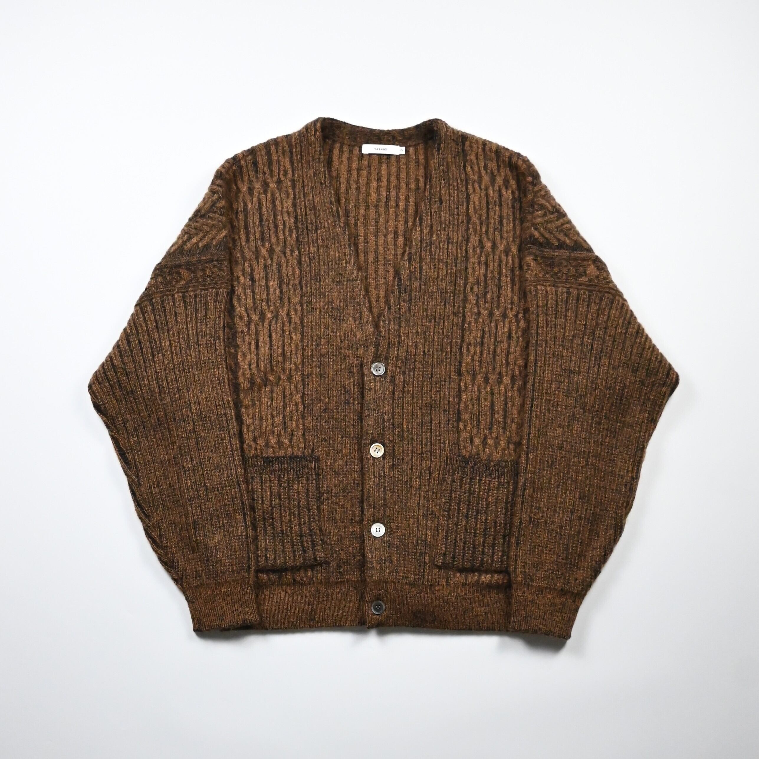 キッドモヘア混の柔らかで優しい光沢ある糸を使用した7ゲージモヘアカーディガン